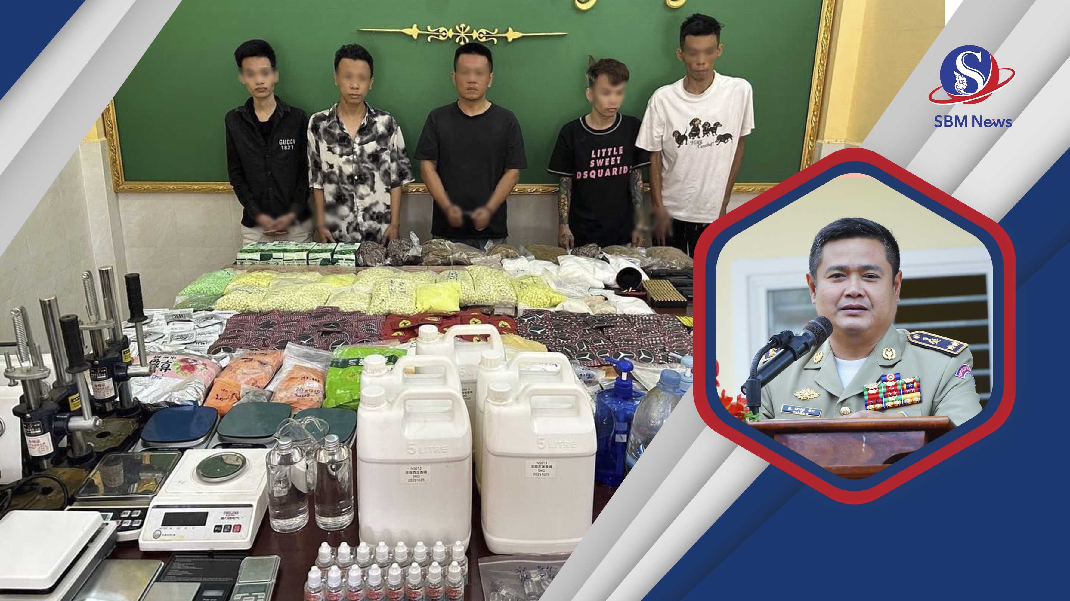 ប៉ូលិសខេត្តស្វាយរៀង បង្ក្រាបចិន និងវៀតណាម៥នាក់ រឹបអូសថ្នាំញៀន៤៤គីឡូក្រាម និងកាំភ្លើ.ងខ្លី៤ដើម
