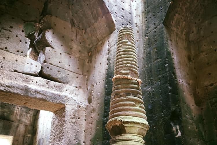 នៅពេលយើងធ្វើដំណើរទៅទស្សនាប្រាសាទ ព្រះខ័ន គួរតម្រង់ទៅរកទីចំ កណ្តាលនៃប្រាសាទដែលជាបេះដូងដែល ស្ថិតចំអ័ក្សនៃប្រាសាទ លោកអ្នក នឹង ប្រទះឃើញរន្ធលើថ្មតូចទំហំ ប៉ុន ពែង អាកោ ប៉ុនមេជើង ចំនួន រាប់ម៉ឺនដែល បន្សល់ទុក ។