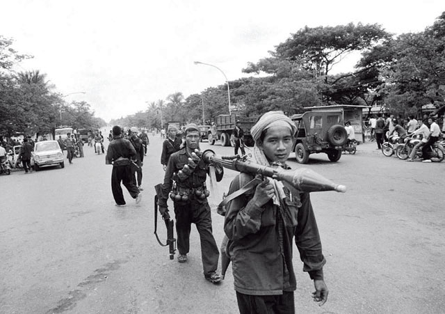 លុះដល់វេលារសៀលថ្ងៃដដែល ពេលគាត់កំពុងសម្រាកនៅក្នុងខ្ទមការពារកំដៅថ្ងៃមួយ គាត់ឮសូរសំឡេងពួកយោធាដែលនៅកន្លែងវិទ្យុទាក់ទង ចុះចែកគ្នាអ៊ូអរខ្លាំងពេក គាត់ក៏ដើរទៅមើល ឃើញពួកយោធាមួយក្រុមទើបនឹងជិះរថយន្តត្រឡប់មកពីសមរភូមិភ្នំពេញ និយាយថា នៅទីក្រុងភ្នំពេញ មនុស្សម្នាដើរពាសពេញផ្លូវ ធ្វើឲ្យរថយន្តរបស់ពួកគេនៅជាប់គាំង ទៅមុខមិនរួចអស់ជាច្រើនម៉ោង ហើយថា ក្រដាសប្រាក់របបសាធារណរដ្ឋខ្មែរ ត្រូវកងទ័ពបដិវត្តន៍បាចចោលរាយប៉ាយពេញផ្លូវ។ពេលនោះ ទើបគាត់ដឹងច្បាស់ថា ទីក្រុងភ្នំពេញ ត្រូវរំដោះបានទាំងស្រុងហើយអង្គការក៏បានបញ្ជាឲ្យជម្លៀសប្រជាជនទាំងអស់ចេញពីទីក្រុងភ្នំពេញ នោះដែរ។