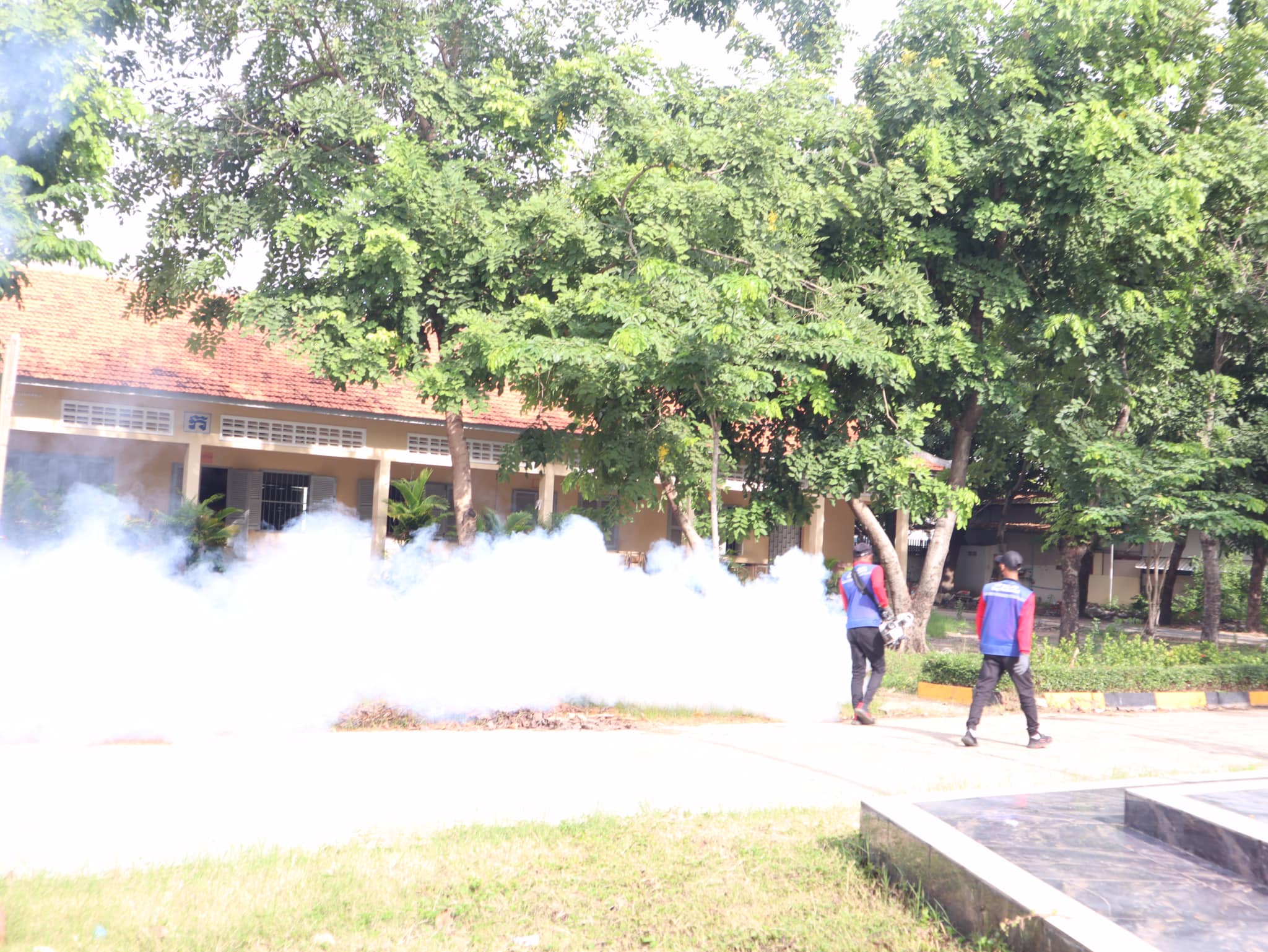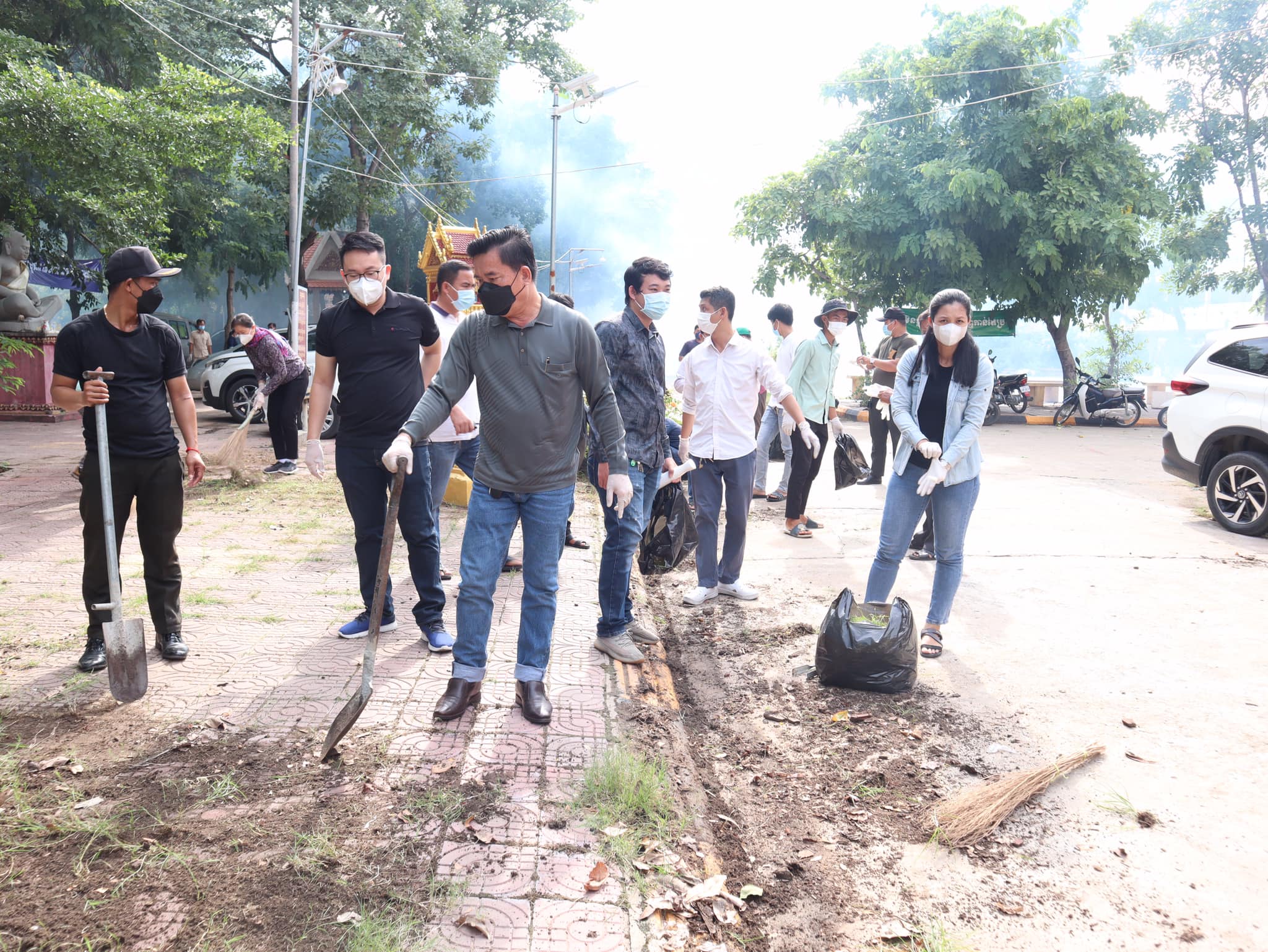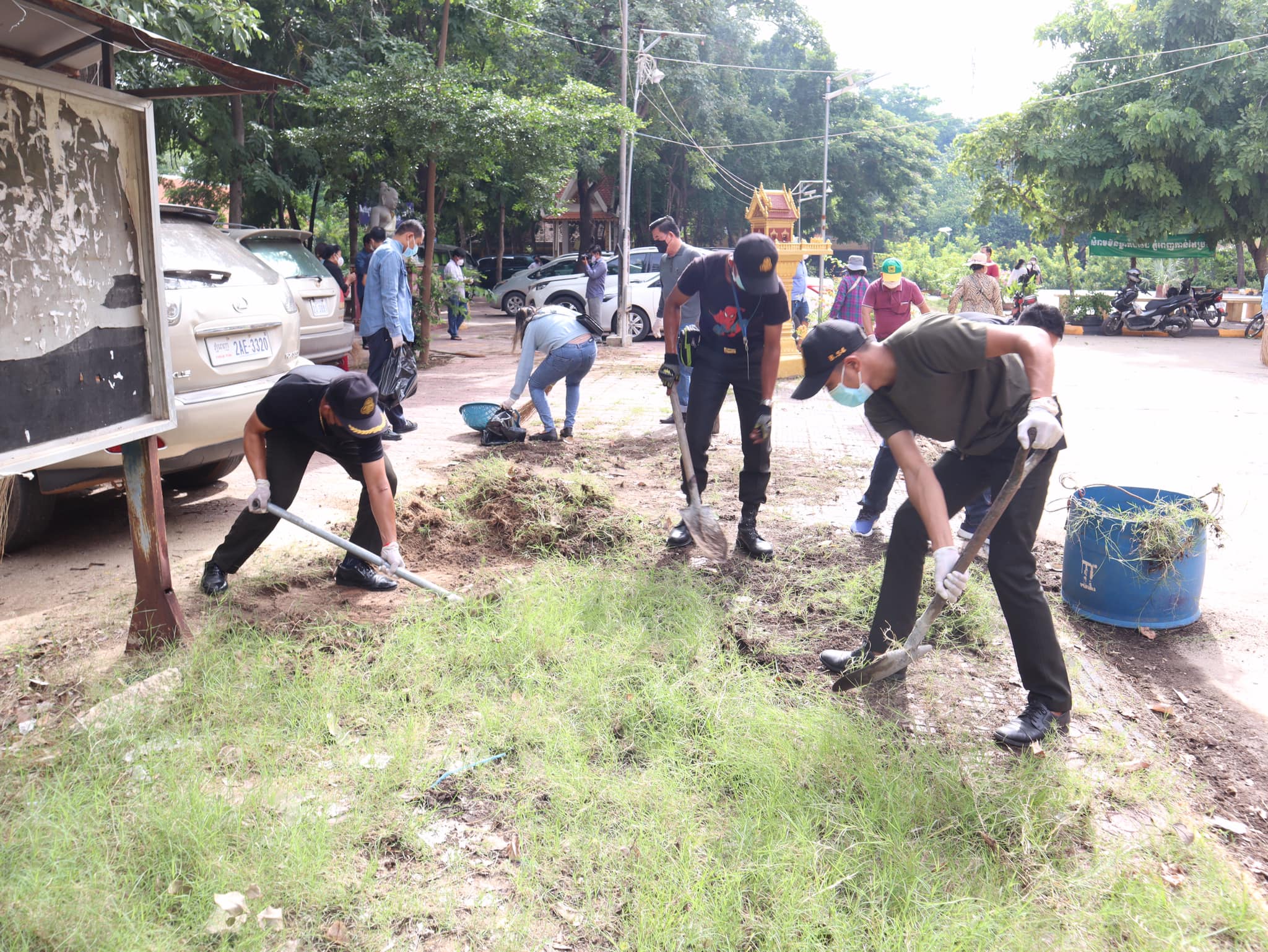 (រាជធានីភ្នំពេញ)៖ នៅព្រឹកថ្ងៃសៅរ៍ថ្ងៃទី០៤ ខែកញ្ញា ឆ្នាំ២០២១នេះ លោកធឹម សំអាន អភិបាលនៃគណៈអភិបាលខណ្ឌបឹងកេងកង និងមន្រ្តីរដ្ឋបាលខណ្ឌ បានសហការជាមួយ នាយកសាលាវិទ្យាល័យជាសុីមបឹងកេង រួមទាំងសិស្សានុសិស្ស ចុះធ្វើអនាម័យ ពលកម្ម សម្អាត និងបាញ់ថ្នាំសម្លាប់មេរោគដោយប្រើ ឧបករណ៍ (ត្រូន) នៅក្នុងទីធ្លាសាលា ដើម្បីត្រៀមបើកដំណើរការសាលារៀនឡើងវិញ...។