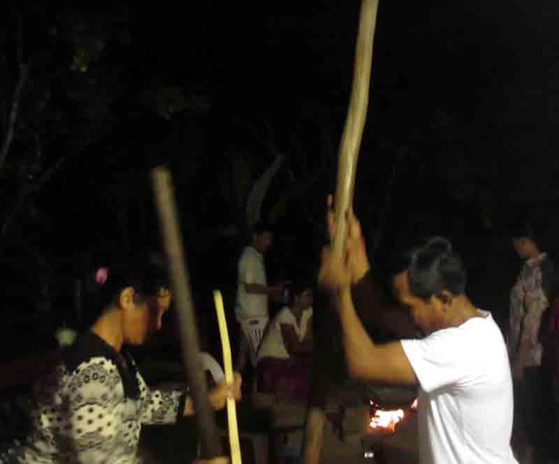 «ដាល់អំបុក» ឬអ្នកស្រុកខ្លះហៅថា «បុកអំបុក» គេច្រើនតែធ្វើនៅពេលច្រូតស្រូវដើមដៃ។ ហើយស្រូវដែលគេយកមកបុកច្រើនជាស្រូវដំណើបថ្មី ឬជួនកាលក៏មានស្រូវខ្សាយខ្លះដែរ។ ការដែលដាល់អំបុកគឺមិនមែនដើម្បីតែបានអំបុកទទួលទានម្យ៉ាងទេ បំណងមួយទៀតគឺថាដើម្បីនឹងយកអំបុកទៅប្រើក្នុងពិធី។ រីឯពិធីដែលអ្នកស្រុកធ្វើរួមគ្នានៅតាមវត្តហៅថា «អកអំបុកសំពះព្រះខែ» ។ សូមបញ្ជាក់ថាគេអាចធ្វើកិច្ចបន្តិចបន្តួចដោយមាននិមន្តព្រះសង្ឃមកតាមផ្ទះដែរ។ តែនៅទីនេះខ្ញុំគ្រាន់តែចង់បង្ហាញពីបច្ចេកទេសឬកាយវិការផ្សេងៗនៅពេលគេដាល់អំបុកប៉ុណ្ណោះ។