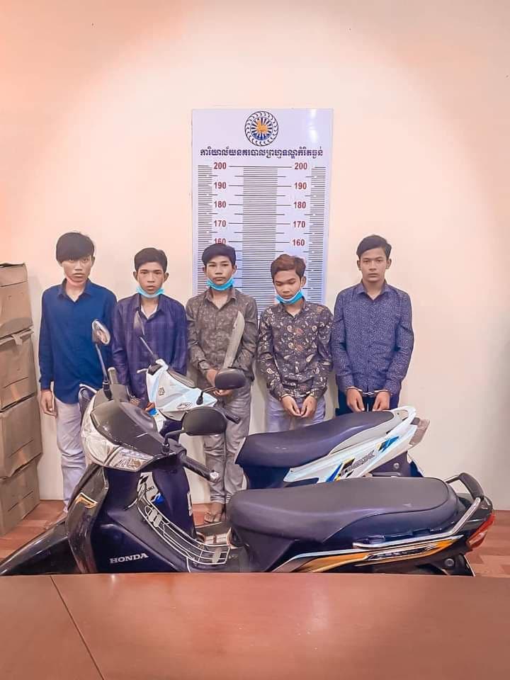 (រាជធានីភ្នំពេញ)៖ ក្រុមជនសង្ស័យចំនួន៥នាក់ ក្នុងចំណោម៦នាក់ ត្រូវបានកម្លាំងសមត្ថកិច្ចនគរបាលរាជធានីភ្នំពេញ បើកប្រតិបត្តិការចាប់ខ្លួនបាននៅខណ្ឌច្បារអំពៅកាលពីថ្ងៃទី២៥ ខែវិច្ឆិកា ឆ្នាំ២០២១ ពាក់ព័ន្ធករណីលួច មានស្ថានទម្ងន់ទោស(ធាក់ប្លន់)យកម៉ូតូចំនួន២លើក។ ប្រតិបត្តិការចុះបង្រ្កាបនេះ ធ្វើឡើងដោយនគរបាលព្រហ្មទណ្ឌកម្រិតធ្ងន់នៃស្នងការដ្ឋាននគរបាលរាជធានីភ្នំពេញ សហការជាមួយអធិការដ្ឋាននគរបាលខណ្ឌច្បារអំពៅ ក្រោមការសម្របសម្រួលនីតិវិធីពីលោក សេង ហៀង ព្រះរាជអាជ្ញារងអមសាលាដំបូងរាជធានីភ្នំពេញ...។