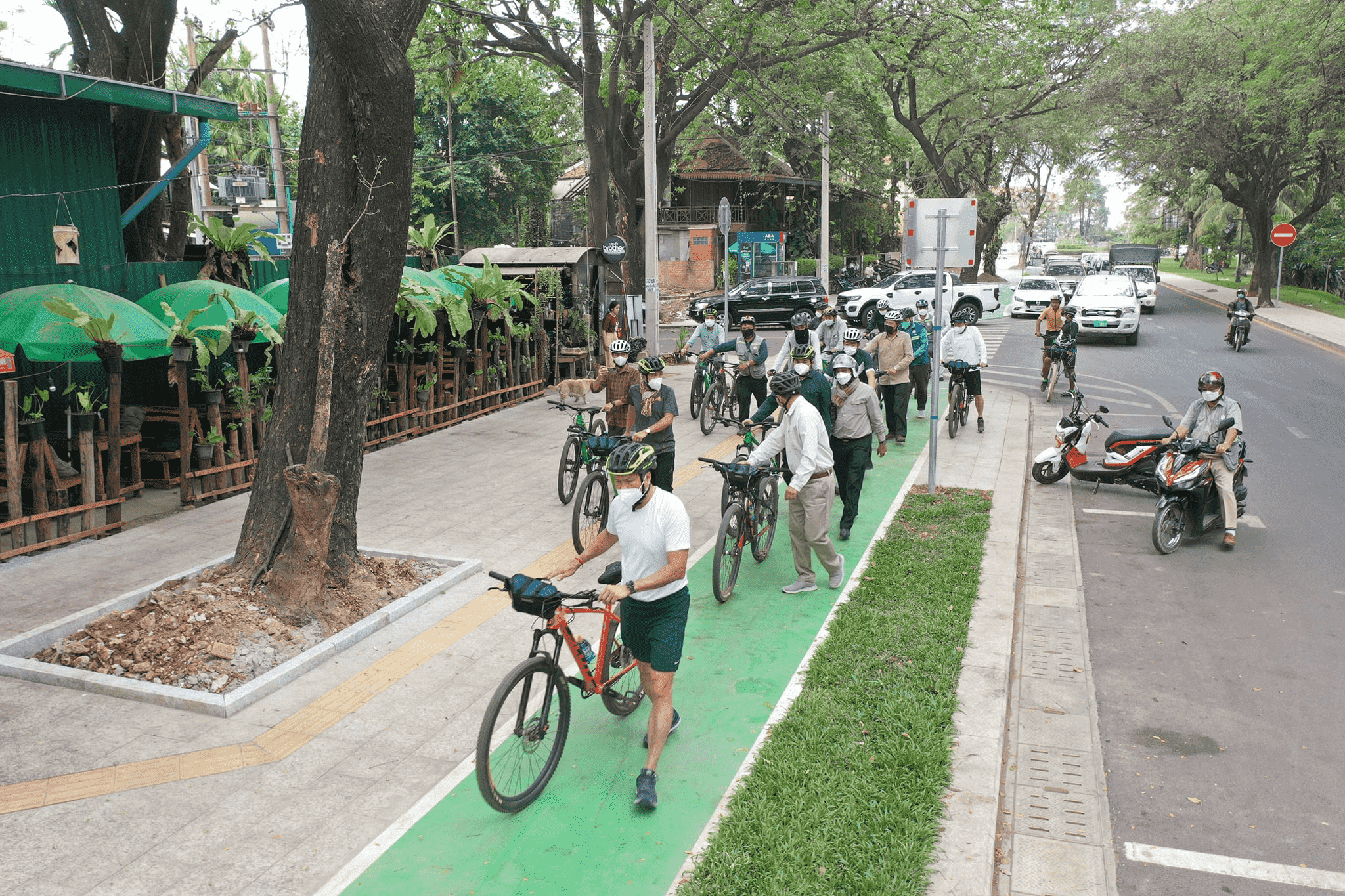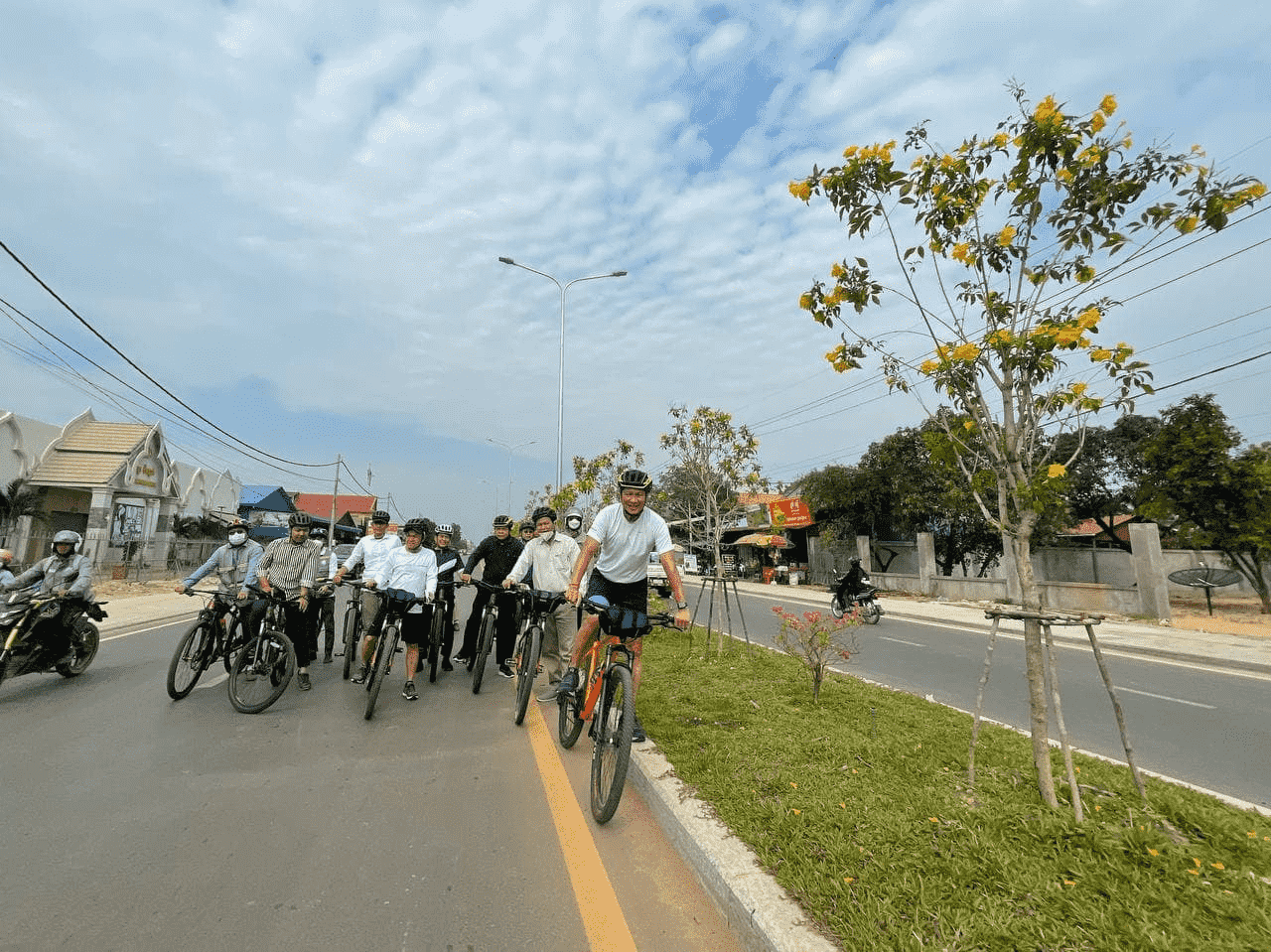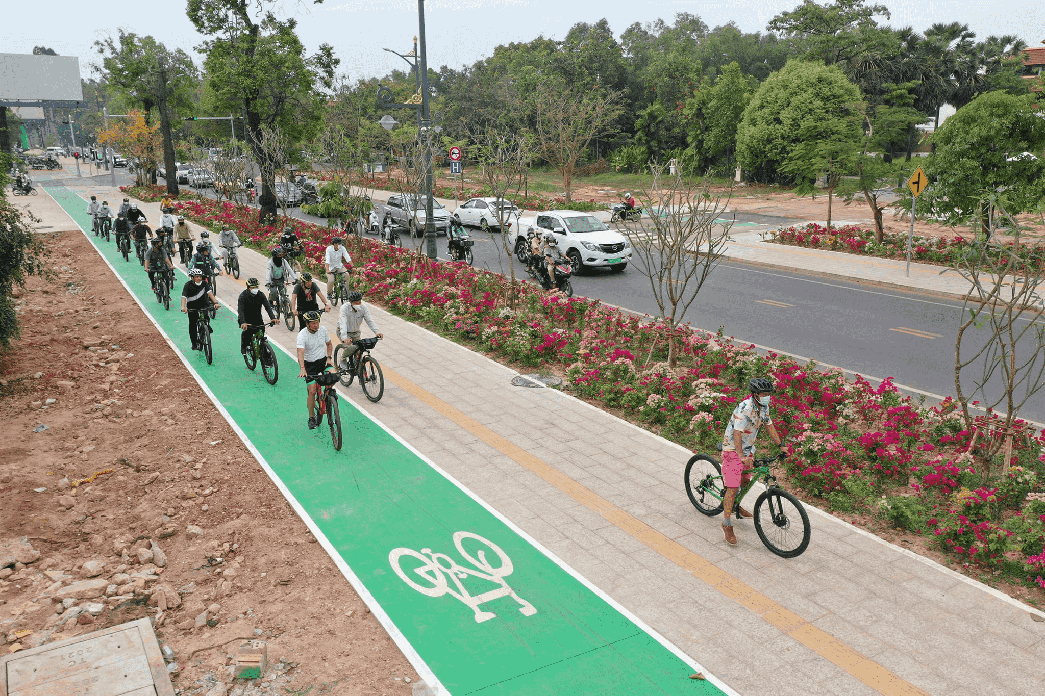 (ខេត្តសៀមរាប)៖ ថ្ងៃអាទិត្យទី១៣ ខែកុម្ភៈ ឆ្នាំ២០២២ ឯកឧត្ដមទេសរដ្ឋមន្ត្រី ស៊ុន ចាន់ថុល រដ្ឋមន្ត្រីក្រសួងសាធារណការ និងដឹកជញ្ជូន និងជាអនុប្រធានប្រចាំការនៃគម្រោងស្ថាបនាហេដ្ឋារចនាសម្ព័ន្ធផ្លូវ៣៨ខ្សែ នៅក្នុងក្រុងសៀមរាប បានដឹកនាំគណៈប្រតិភូក្រសួងអញ្ជើញជិះកង់ពិនិត្យមើលផ្លូវទោចក្រយានយន្ត និងផ្លូវសម្រាប់អ្នកថ្មើរជើង ក្រោយពេលគម្រោងស្ថាបនាហេដ្ឋារចនាសម្ព័ន្ធផ្លូវចំនួន៣៨ខ្សែ នៅក្រុងសៀមរាប ខេត្តសៀមរាប ត្រូវបានបញ្ចប់ជាស្ថាពរ តាមផែនការដែលបានគ្រោងទុក។