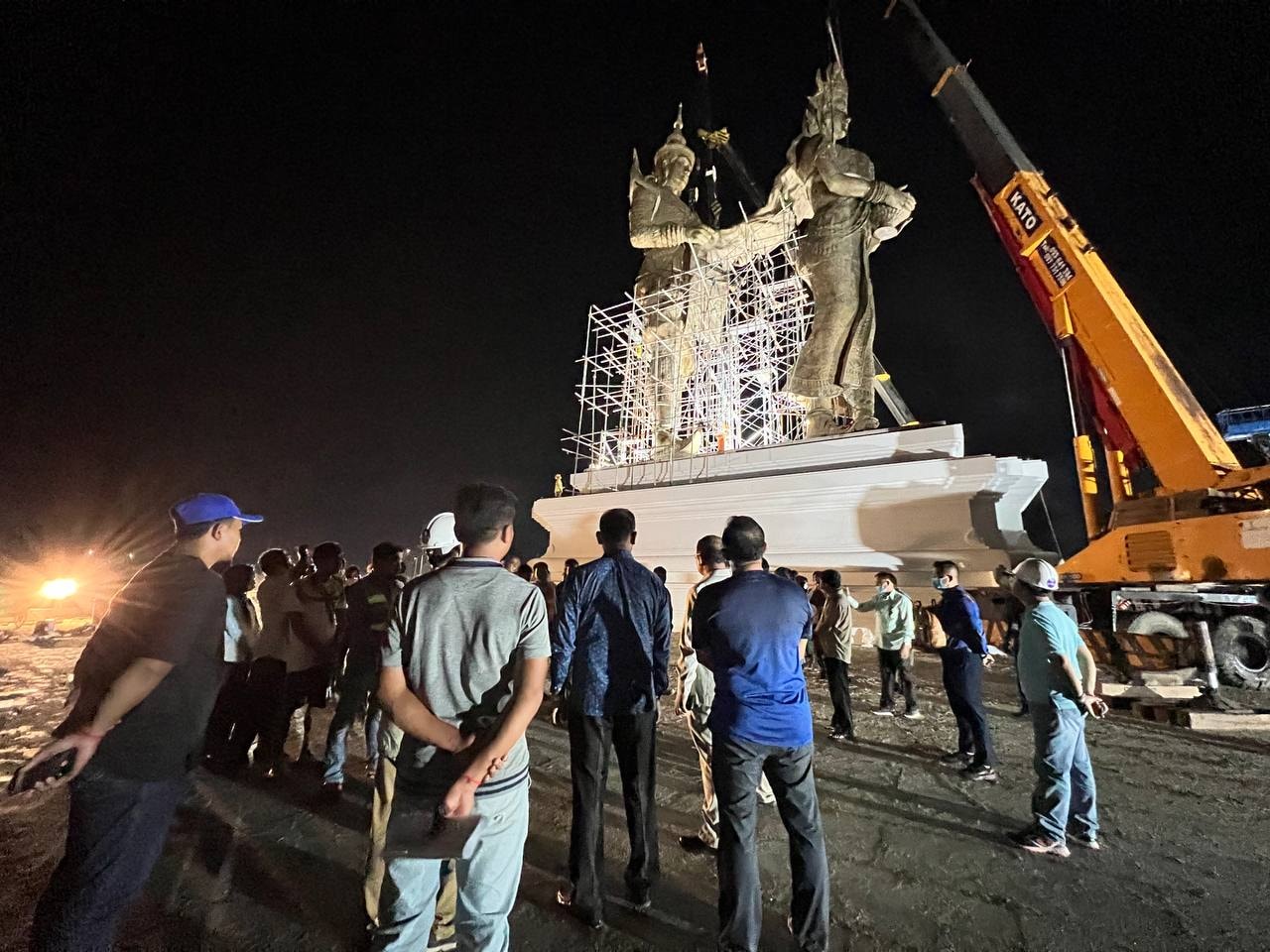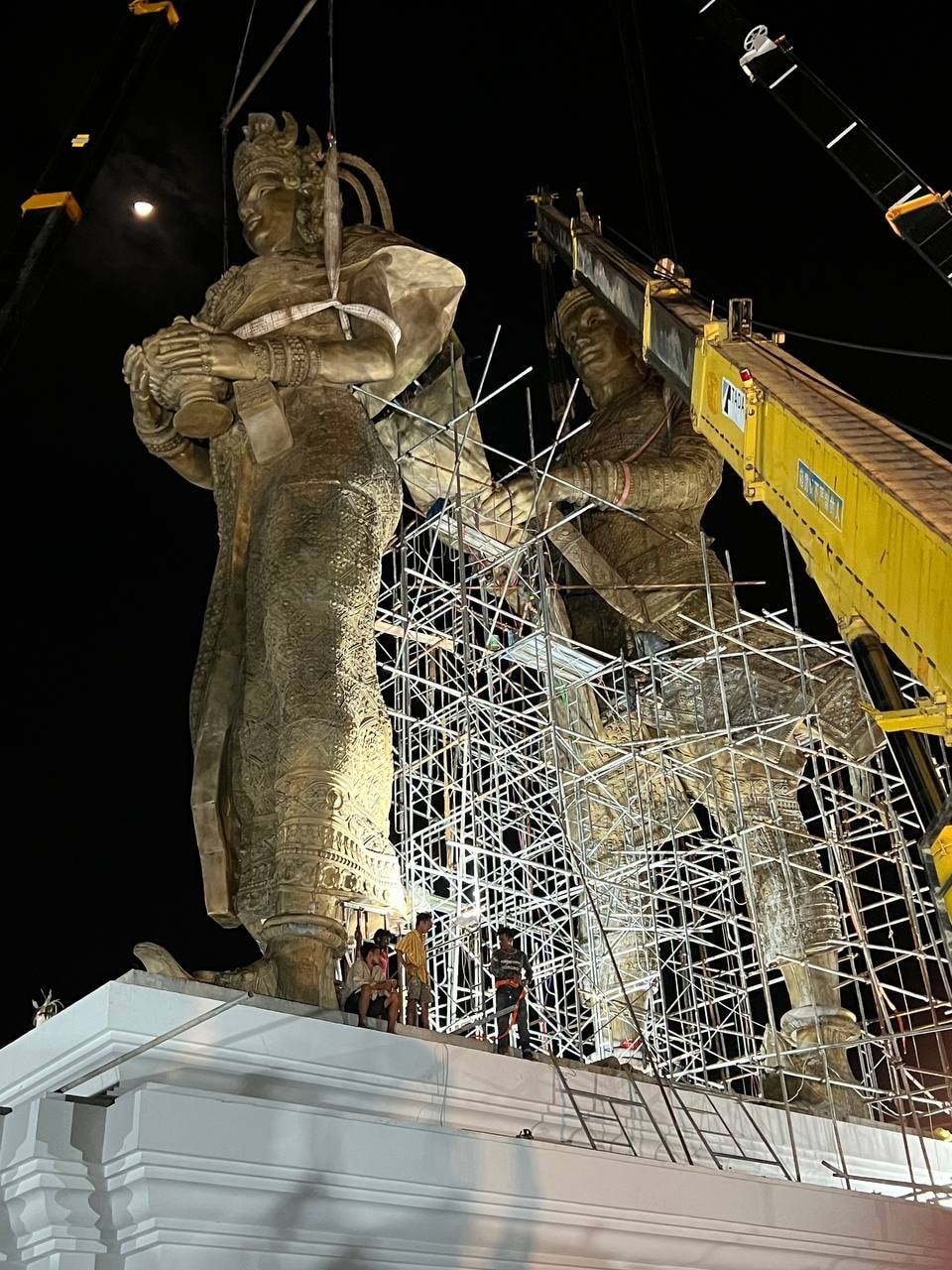រូបសំណាកព្រះថោងនាងនាគត្រូវបានក្រុមអ្នកជំនាញចំនួន៣៥នាក់ ចាប់ផ្តើមផ្គុំ និងដំឡើងលើបល្ល័ង្កតាំងពីរូបសំណាកនេះត្រូវបានដឹកមកដល់កំពង់ផែព្រះសីហនុកាលពីថ្ងៃទី២៥ ខែមីនា ឆ្នាំ២០២២។ រូបសំណាកនេះត្រូវបានធ្វើឡើងនៅប្រទេសចិនតាំងពីខែមេសា ឆ្នាំ២០២០ដែលបង្កើតឡើងដោយសា្នដៃកូនខ្មែរ ដោយធ្វើឡើងពីស្ពាន់សុទ្ធសាធទម្ងន់សរុប៦០តោន។