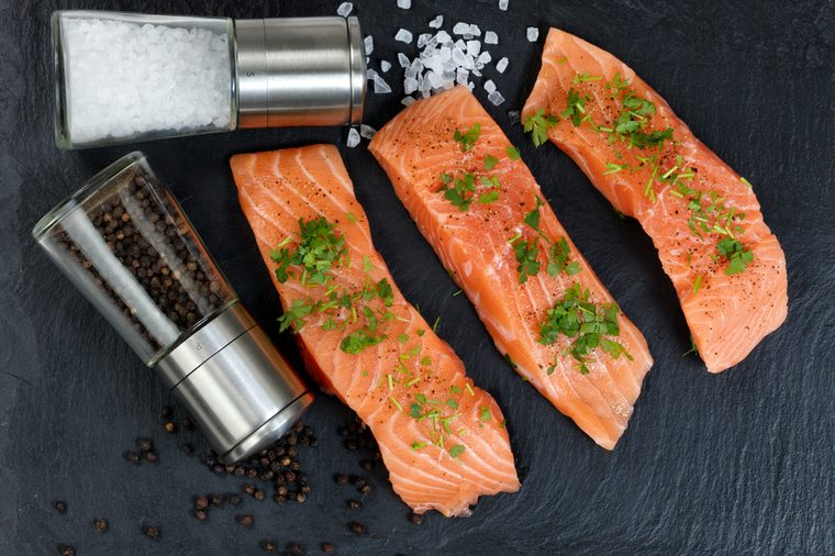 ១) ត្រីសាម៉ុន៖ អ្នកនឹងទទួលបានវីតាមីន D សេលេញ៉ូម ដែលជួយដល់ការរំលាយអាហាររបស់អ្នក អាស៊ីតខ្លាញ់អូមេហ្គា ៣ ដែលជាខ្លាញ់ល្អដែលការពារជំងឺបេះដូង និងវីតាមីន B12 ដែលល្អសម្រាប់ខួរក្បាល និងរាងកាយរបស់អ្នក។ អ្នកជំនាញនិយាយថា ត្រីសាម៉ុងប៉ាស៊ីហ្វិកធម្មជាតិ គឺជាជម្រើសដ៏ល្អបំផុត ពីព្រោះវាមិនសូវមានជាតិបារត និងថ្នាំអង់ទីប៊ីយោទិច និងអរម៉ូនតិចជាងមុន។