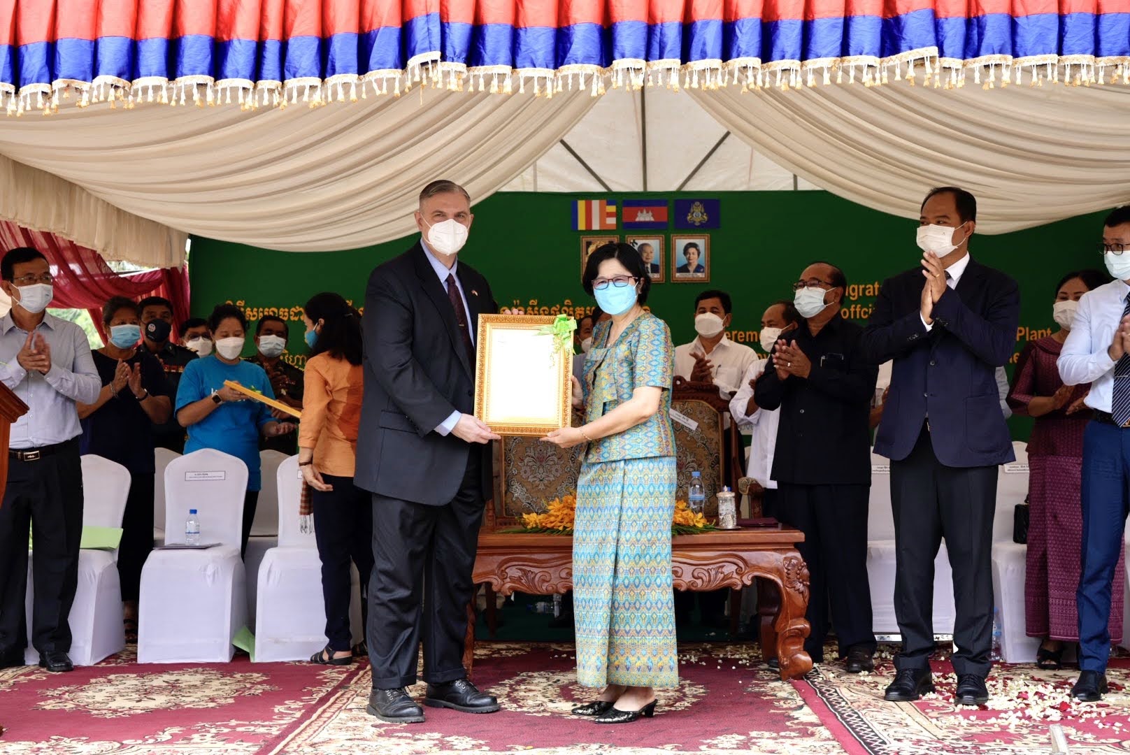 ឯកអគ្គរដ្ឋទូតសហរដ្ឋអាម៉េរិក ប្រចាំនៅកម្ពុជា លោក W. Patrick Murphy មានប្រសាសន៍ថា៖ «ម៉ាស៊ីននេះ នឹងបំពេញតម្រូវការផលិតអ៊ុកស៊ីហ្សែន សម្រាប់សេវាសំខាន់ៗដូចជា ការព្យាបាលអ្នកជំងឺកូវីដ-១៩ ការតាមដាន និងការព្យាបាលជំងឺសង្គ្រោះបន្ទាន់។ វាជាផ្នែកមួយក្នុងទឹកប្រាក់ជាង១៦លានដុល្លារ នៅក្នុងការគាំទ្ររបស់រដ្ឋាភិបាលសហរដ្ឋអាម៉េរិក ចំពោះការឆ្លើយតបរបស់កម្ពុជាលើជំងឺ រាតត្បាត និងជាឧទាហរណ៍ ដែលបង្ហាញនៃចំណងទាក់ទងដ៏រឹងមាំ នៃប្រទេសទាំងពីររបស់យើង»។ជាមួយគ្នានេះដែរ លោកស្រី Foroogh Foyouzat តំណាងអង្គការយូនីសេហ្វប្រចាំកម្ពុជា បាននិយាយថា៖ «អ៊ុកស៊ីហ្សែន អាចធ្វើឱ្យមានភាពខុសគ្នារវាងជីវិត និងសេចក្តីស្លាប់។ នេះជាមូលហេតុ ដែលអង្គការយូនីសេហ្វ កំពុងធ្វើការជាមួយរាជរដ្ឋាភិបាលកម្ពុជា ដើម្បីកែលម្អការផ្គត់ផ្គង់អ៊ុកស៊ីហ្សែននិងហេដ្ឋារចនាសម្ព័ន្ធ ទន្ទឹមនឹងការកសាងសមត្ថភាពបុគ្គលិកសុខាភិបាលក្នុងការប្រើប្រាស់វា»។