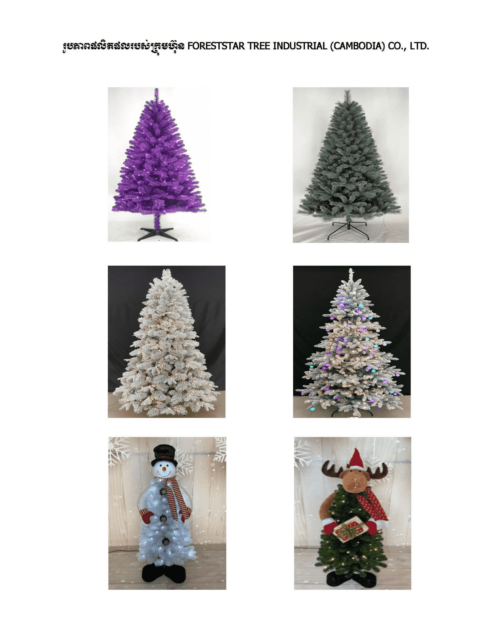 ដោយឡែក ក្រុមហ៊ុនទី៥ “FORESTSTAR TREE INDUSTRIAL (CAMBODIA) CO., LTD.” ដែលជាគម្រោងបង្កើតរោងចក្រផលិតដើមណូអែល អំពូលភ្លើងលម្អដើមណូអែល សម្ភារៈគ្រប់ប្រភេទសម្រាប់តុបតែងលម្អដើមណូអែល និងវត្ថុអនុស្សាវរីយ៍ ដែលមានទីតាំងវិនិយោគស្ថិតនៅក្នុងតំបន់សេដ្ឋកិច្ចពិសេស ហាយ ផាក ខេត្តស្វាយរៀង ក្នុងទុនវិនិយោគប្រមាណ ៥,៤លានដុល្លារអាម៉េរិក។