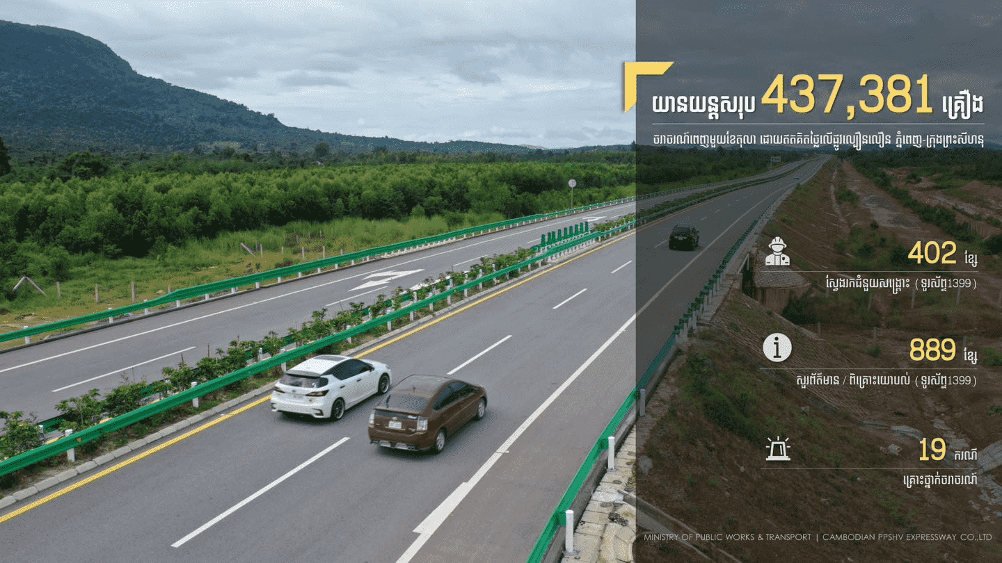 គួរបញ្ជាក់ថា ផ្លូវល្បឿនលឿនភ្នំពេញ-ព្រះសីហនុ មានប្រវែងសរុប១៨៧,០៥គីឡូម៉ែត្រ ដែលបានបើកការដ្ឋានសាងសង់ កាលពីថ្ងៃទី២២ ខែមីនា ឆ្នាំ២០១៩។ ផ្លូវនេះ ត្រូវបានបើកឱ្យបងប្អូនប្រជាពលរដ្ឋអាចធ្វើដំណើររយៈពេល១ខែពេញ ពោលគឺចាប់ពីថ្ងៃទី១-៣១ ខែតុលា ឆ្នាំ២០២២ ដោយឥតគិតថ្លៃ។ រយៈពេលមួយខែ នៃការបើកឱ្យប្រើប្រាស់សាកល្បងដោយឥតគិតថ្លៃ ផ្លូវល្បឿនលឿនភ្នំពេញ-ក្រុងព្រះសីហនុនេះ គឺមានយានយន្តចំនួនជិត៤៤ម៉ឺនគ្រឿង បានឱ្យធ្វើចរាចរណ៍លើផ្លូវនេះ។