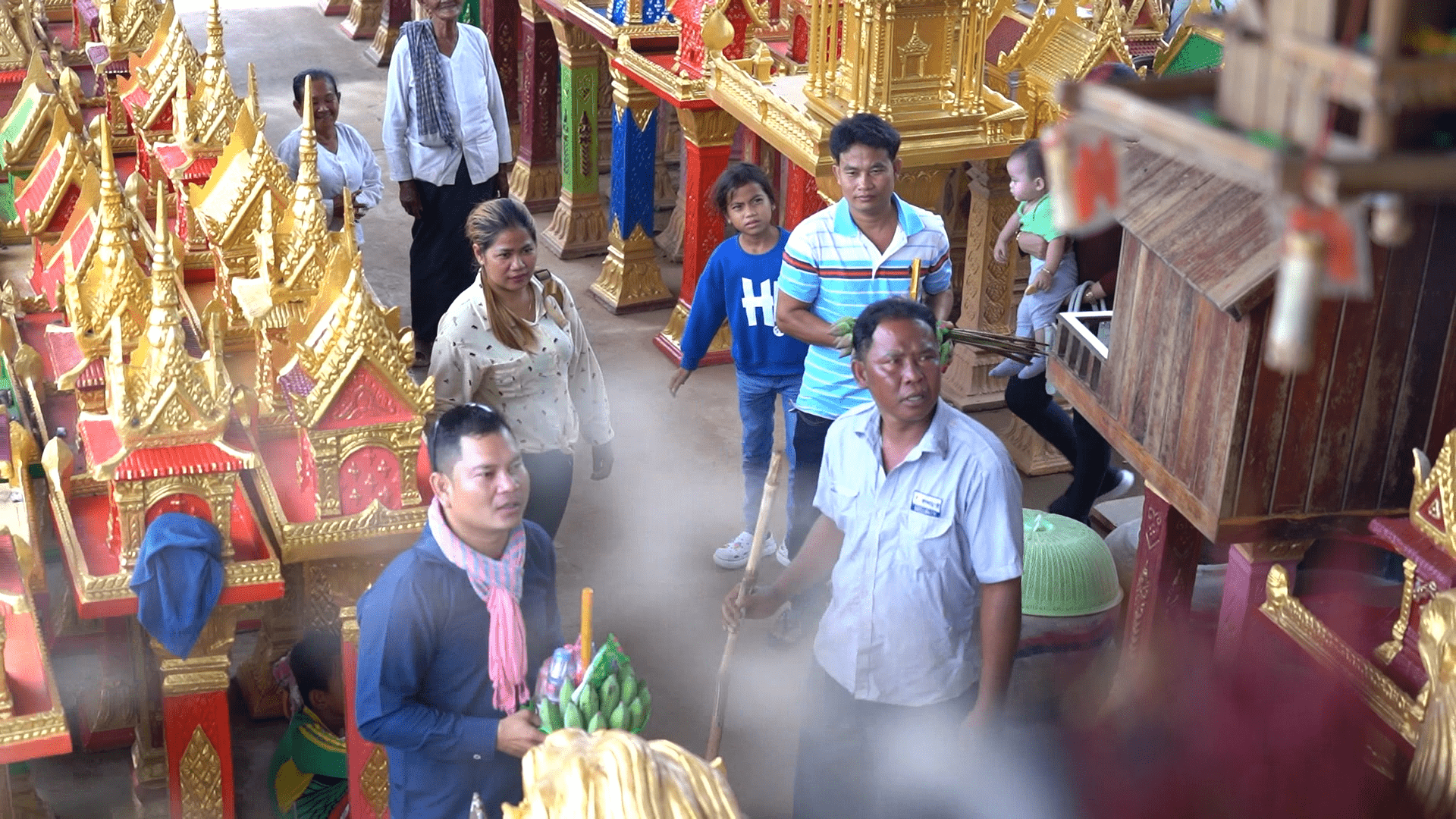 ដោយឡែក លោកអ៊ូច នៅ ជាប្រជាការពារភូមិដែលថ្នាក់លើចាត់តាំងឱ្យមករៀបចំសណ្តាប់ធ្នាប់នៅទីតាំងផ្ទះខ្មោចទិញ បានឱ្យដឹងថា ក្រុមរបស់លោកមានគ្នា៨នាក់ ចែកចេញជាវេនប្រចាំការ១ថ្ងៃ២នាក់ ផ្លាស់វេនប្តូរគ្នា១្ងៃ២នាក់នេះ ជារៀងរាល់ថ្ងៃ ដើម្បីសម្រួលដល់ប្រជាពលរដ្ឋដែលមកធ្វើការបន់ស្រន់ ដោយក្នុង១ថ្ងៃៗ មានមនុស្សមកមិនក្រោមពីជាង១០០នាក់ទៅ២០០នាក់ឡើយ គឺមកអត់ដែលដាច់ទេ។
