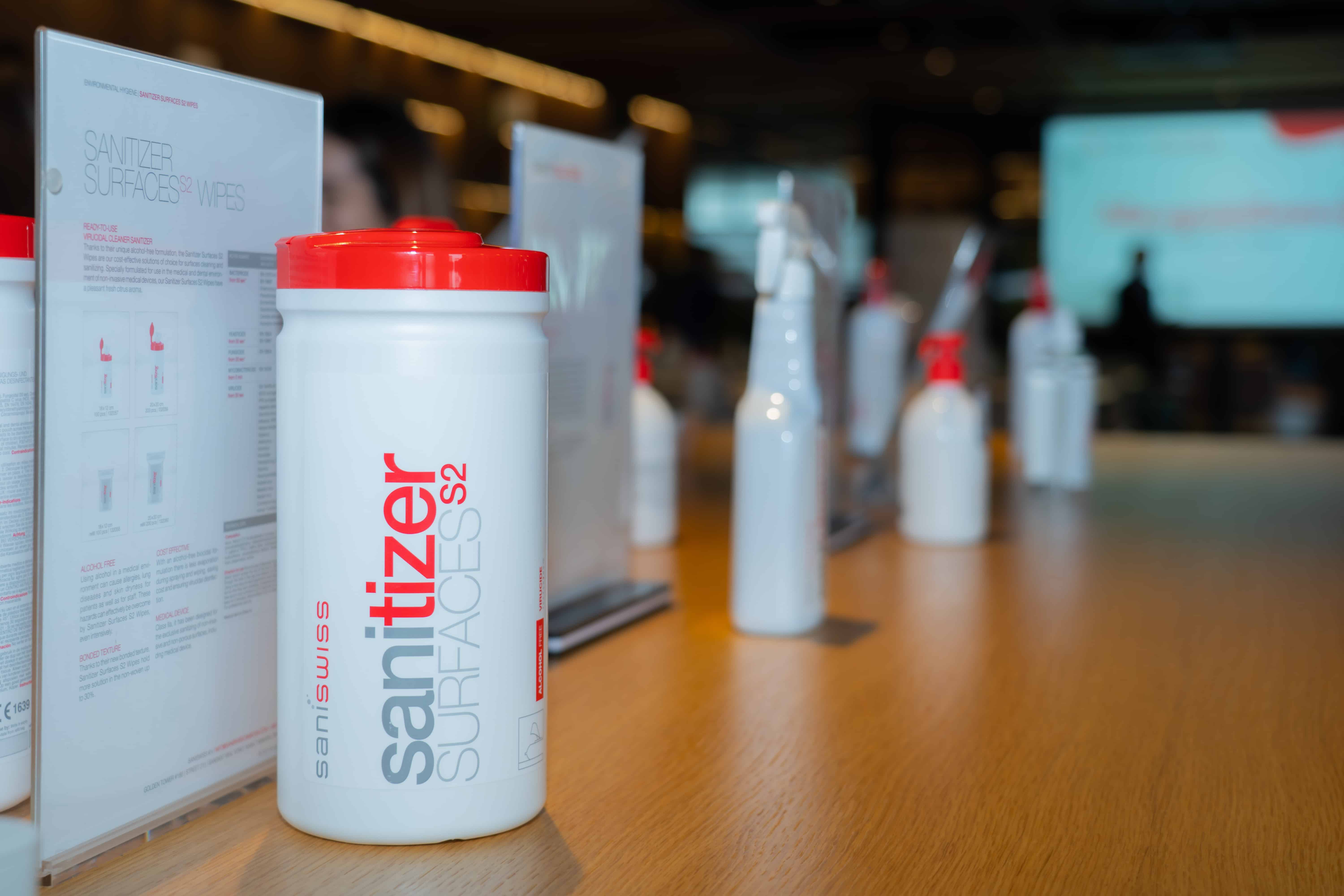ស្របជាមួយគ្នានោះ លោក Raphael Angeprebay ប្រធានផ្នែកលក់ប្រចាំតំបន់អាស៊ី បានឱ្យដឹងថា Sanitizer Surfaces S2 wipes ជាផលិតផល «2 in 1» ដែលមានមុខងារលាងសម្អាត និងកម្ចាត់រោគក្នុងពេលតែមួយ។ លោកបានលើកឧទាហរណ៍ថា ជាទូទៅយើងមិនអាចកម្ចាត់មេរោគបានទេ ប្រសិនបើផ្ទៃមិនស្អាត។ ដូច្នេះហើយ បើយើងប្រើតែអាល់កុលជូតមួយមុខ វាមិនមានប្រសិទ្ធភាពទេ បើផ្ទៃខាងលើមិនត្រូវបានសម្អាត ១០០ភាគរយ។ ធាតុផ្សំរបស់ Sanitizer Surfaces S2 គឺប្រឆាំងនឹងមេរោគបាក់តេរី និងផ្សិត ដោយមេរោគទាំងនោះនឹងអសកម្មក្នុងរយៈពេលត្រឹមតែ ៣០វិនាទីទេប៉ុណ្ណោះ។
