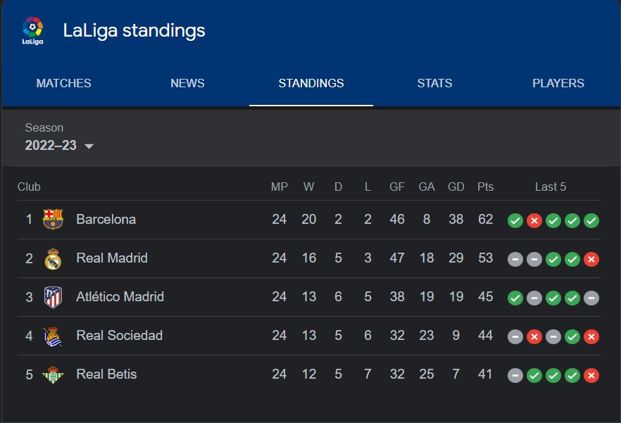 គួរបញ្ជាក់ថា នៅក្នុងការប្រកួតលីគសប្តាហ៍ទី២៧ នៃក្របខណ្ឌ La Liga ក្រុម FC Barcelona នឹងត្រូវជួបជាមួយក្រុម Athletic Bilbao នៅឯកីទ្បដ្ឋាន San Mamés នាថ្ងៃទី១៣ ខែមីនា។ ចំណែក ឯក្រុមអធិរាជ-ស Real Madrid ត្រូវប្រកួតជាមួយក្រុម Espanyol នៅឯកីទ្បដ្ឋាន Santiago Bernabéu នាថ្ងៃទី១១ ខែមីនា ឆ្នាំ២០២៣ ខាងមុខនេះផងដែរ៕