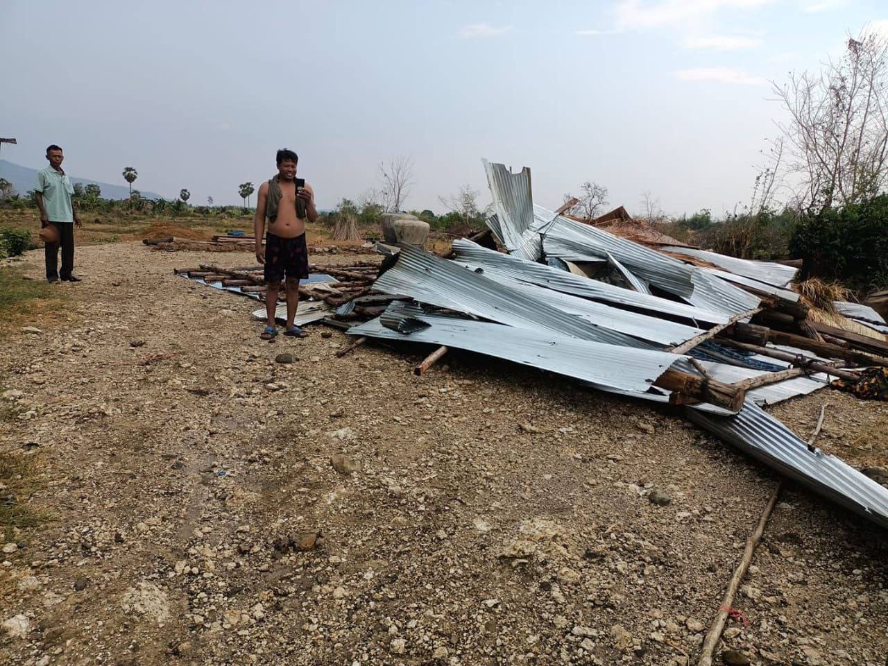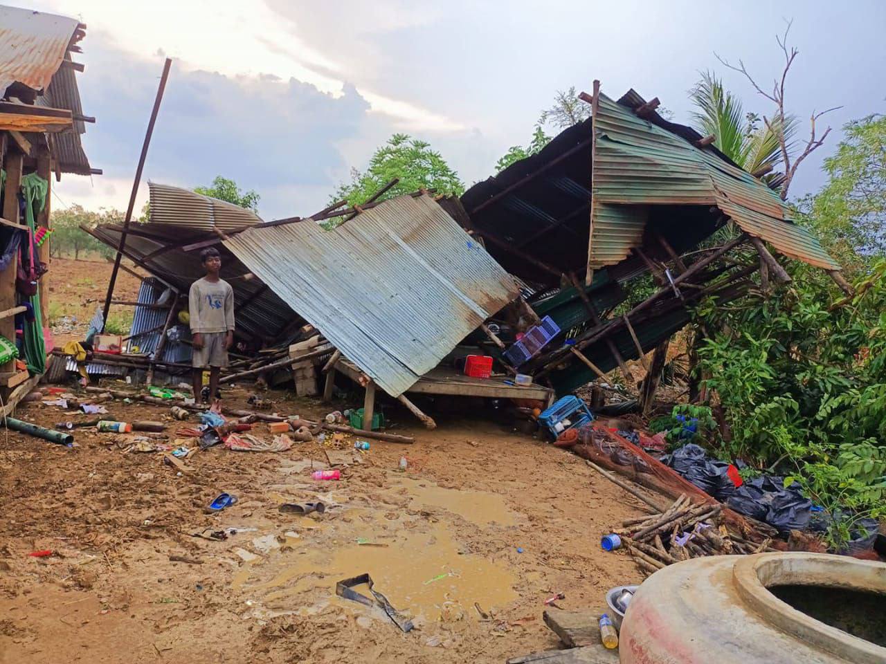 ខេត្តបាត់ដំបង៖ ភ្លៀងធ្លាក់កក់ខែមួយមេ លាយឡំជាមួយខ្យល់កន្ត្រាក់ បណ្តាលឱ្យខូចខាតផ្ទះប្រជាពលរដ្ឋចំនួន ៣៧ខ្នងនៅ ស្រុករតនមណ្ឌល និងស្រុកសំឡូត នៃខេត្តបាត់ដំបង នៅថ្ងៃទី២៧ ខែមីនា ឆ្នាំ២០២៣។