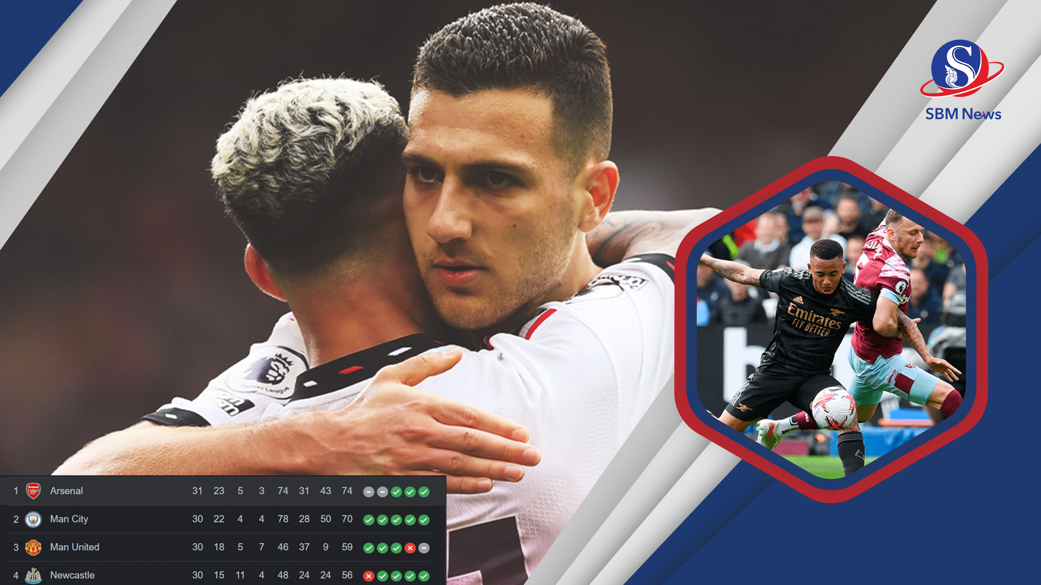 សូមបញ្ជាក់ថា បច្ចុប្បន្ន ក្លឹបកាំភ្លើងធំ Arsenal បន្តកាន់កាប់កំពូលតារាង English Premier League ក្នុងសប្តាហ៍ទី ៣១ ដោយរក្សាក្សាគម្លាតពីក្រុមលេខ ២ គឺក្លឹបមេឃខៀវ Manchester City ចំនួន ៤ពិន្ទុប៉ុណ្ណោះ ខណៈដែលក្រុមដែលមានមូលដ្ឋានក្នុងមេឃខៀវនៅសល់ ១ ប្រកួតទៀតក្នុងដៃ៕
