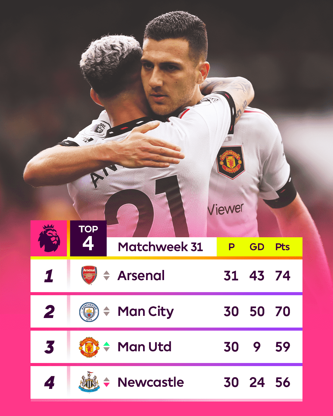 លទ្ធផលនេះបានធ្វើឱ្យក្លឹប Manchester United ទ្បើងមកលេខ ៣ លើ Newcastle United វិញ ខណៈដែលក្លឹប Arsenal បានបង្កើតកំណត់ត្រាដ៏អាក្រក់បំផុតមួយក្នុងប្រវត្តិសាស្ត្ររបស់ខ្លួន ដោយរបូតរហូតដល់ ៤ពិន្ទុក្នុងរយៈពេលពីរសប្តាហ៍ចុងក្រោយនេះ បន្ទាប់ស្មើគ្នា២ប្រកួតជាប់ៗគ្នា ខណៈដែលកាលពីសប្តាហ៍មុន Arsenal ដែលនាំក្រោមការដឹកនាំរបស់លោក Mikel Arteta បានត្រឹមស្មើគ្នា ២-២ ជាមួយនឹងក្លឹបហង្សក្រហម Liverpool ។