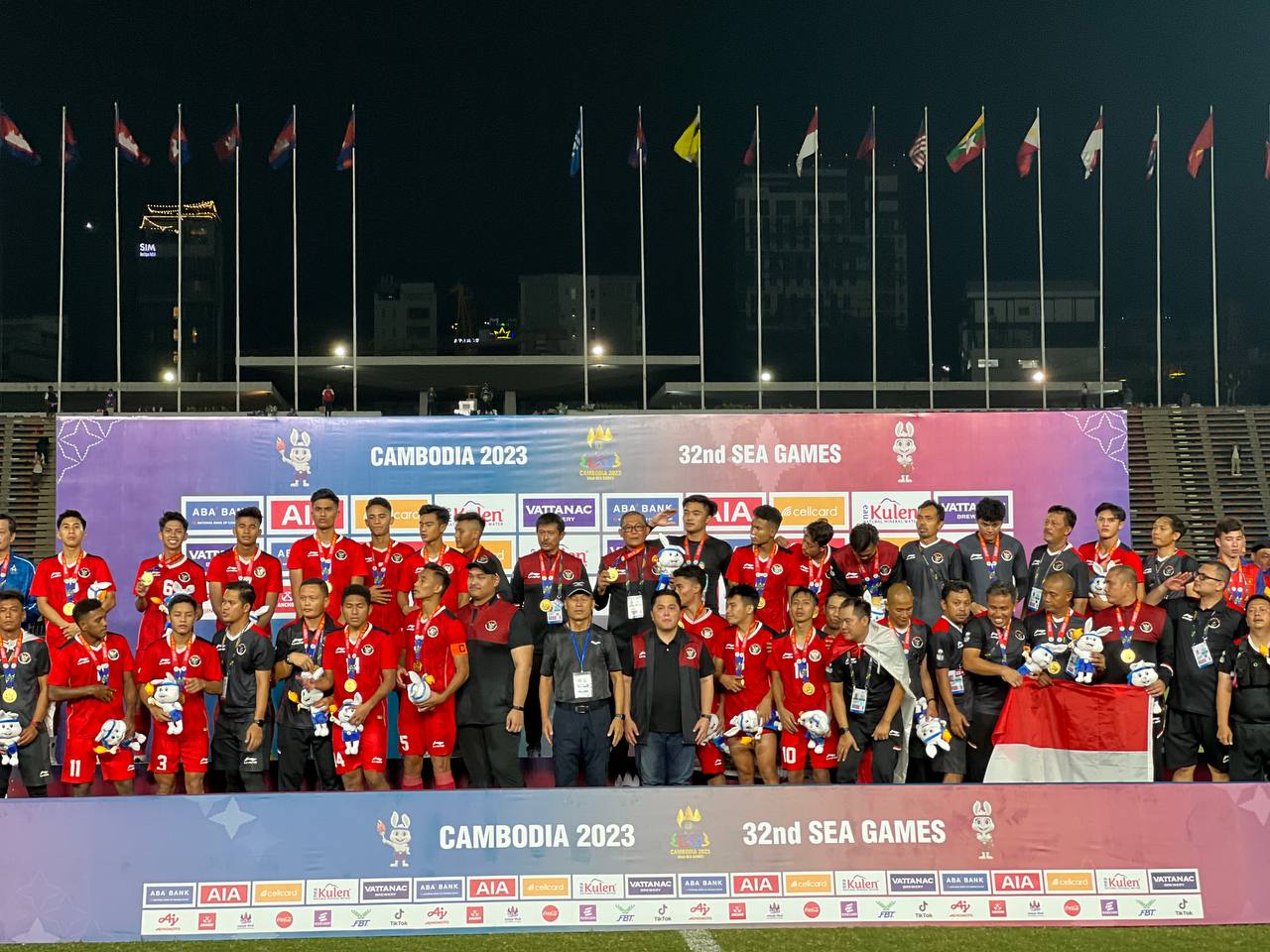 (ស៊ីហ្គេម)៖ ក្រុមកីទ្បាករឥណ្ឌូណេស៊ី U-២២ ទទួលប្រាក់រង្វាន់លើកទឹកចិត្តក្នុងម្នាក់ៗ២៧០០០ដុល្លារសហរដ្ឋអាម៉េរិក បន្ទាប់ពីជួយឱ្យក្រុមដណ្តើមបានមេដាយមាស លើវិញ្ញាសាបាល់ទាត់ផ្នែកបុរសអាយុក្រោម២២ឆ្នាំ សម្រាប់ព្រឹត្តិការណ៍ស៊ីហ្គេម លើកទី៣២ នៅប្រទេសកម្ពុជា។