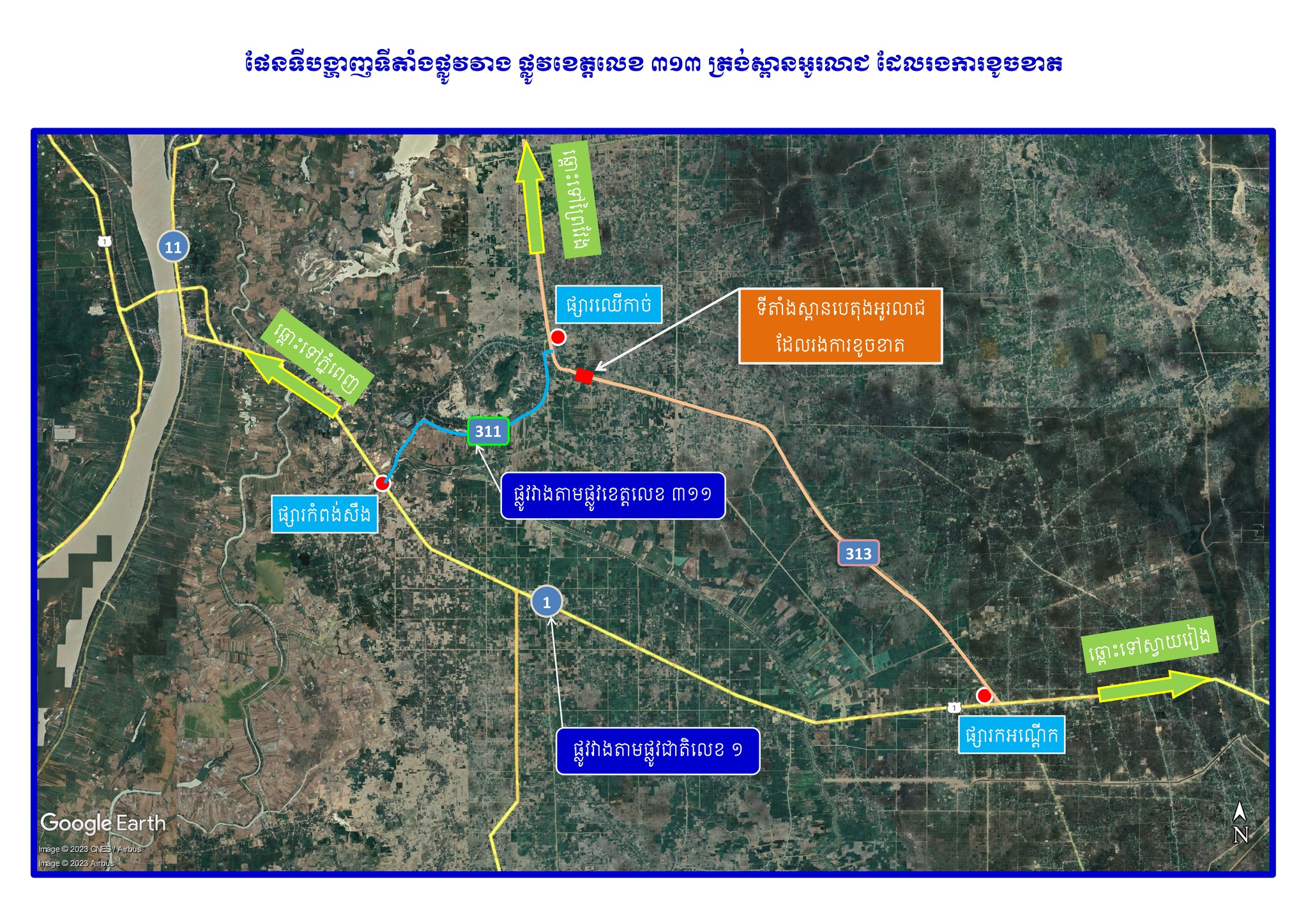 មន្ទីរសារធារណការ បានឱ្យដឹងបន្តទៀតថា ចំពោះផ្លូវវាងទៅមកសូមបងប្អូនប្រជាពលរដ្ឋដែលជាម្ចាស់រថយន្តដឹកទំនិញធុនធ្ងន់ទាំងអស់អាចធ្វើដំណើរតាមផ្លូវជាតិលេខ១ នៅចំណុចផ្សារកអណ្ដើក ស្រុកកំពង់ត្របែក ទៅចំណុចផ្សារកំពង់សឹង ស្រុកព្រះស្តេច និងតាមផ្លូវខេត្តលេខ៣១១ ទៅផ្សារឈើកាច់ ស្រុកបាភ្នំ។ អាស្រ័យហេតុនេះ សូម ម្ចាស់រថយន្តដឹកទំនិញធុនធ្ងន់ទាំងអស់ជ្រាបជាព័ត៌មាន និងចូលរួមសហការអនុវត្តដើម្បីបង្ការការខូចខាតស្ពានកាន់តែធ្ងន់ធ្ងរ និងធានាដល់ការធ្វើដំណើរប្រកបដោយសុវត្ថិភាព៕