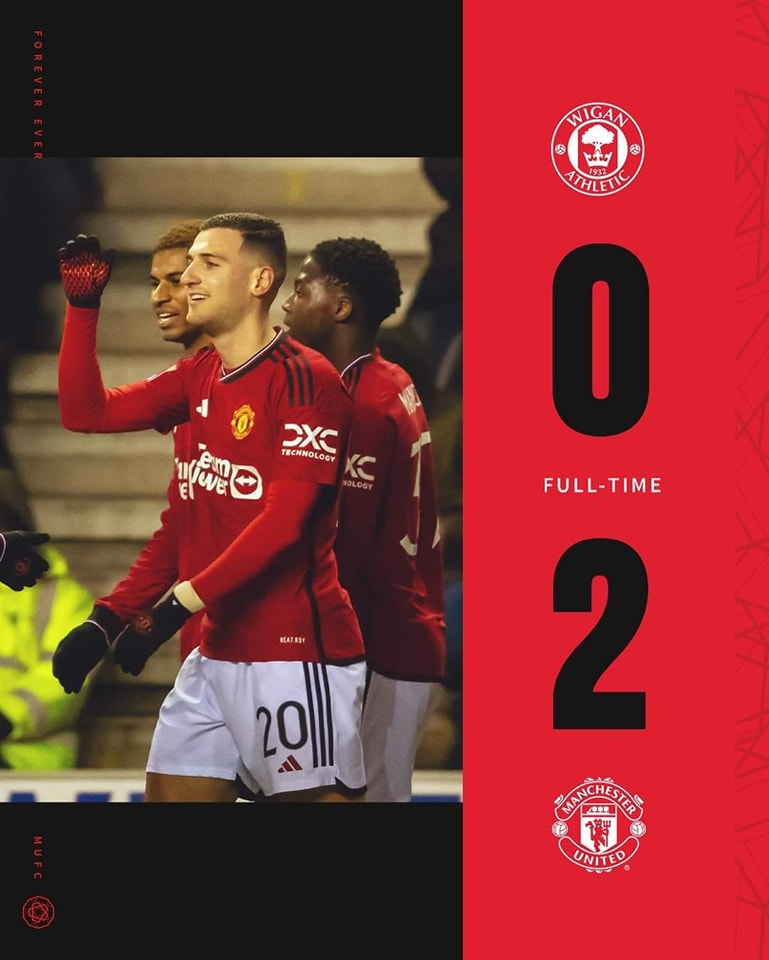 គ្រាប់បាល់ជ័យជម្នះ ២ គ្រាប់របស់ក្រុមបិសាចក្រហម Manchester United រកបានដោយកីទ្បាករ Diogo Dalot នាទី ២២ និងប្រធានក្រុម Bruno Fernandes នាទី ៧៧ ក្នុងតង់ទី ២ ជាការទាត់បាល់ពិន័យ ១១ ម៉ែត្រ ខណៈដែលក្រុម Wigan Athletic ក៏មានឱកាសផងដែរ ប៉ុន្តែមិនមានសំណាងទល់តែសោះនៅក្នុងការប្រកួតនេះ។ លទ្ធផល ០-២ នេះល្មមគ្រប់គ្រាន់ឱ្យក្រុមបិសាចក្រហម Manchester United បានឈានទៅជុំទី ៤ នៃពានរង្វាន់លំដាប់ទីពីររបស់ប្រទេសអង់គ្លេស FA Cup ខណៈដែលក្លឹបយក្សអង់គ្លេសមួយនេះ ធ្លាប់ឈ្នះពានរង្វាន់ខាងលើនេះចំនួន១២ លើករួចមកហើយ។ យ៉ាងណា ក្រៅពីនេះក្លិប Manchester City, Chelsea និង Liverpool សុទ្ធសឹងតែទ្បើងមកវគ្គនេះដូចគ្នា។