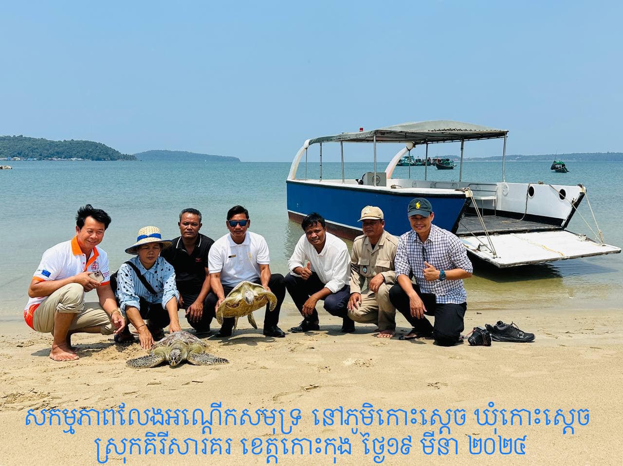 ខេត្តកោះកុង៖ រដ្ឋបាលជលផល នៃក្រសួងកសិកម្ម រុក្ខាប្រមាញ់ និងនេសាទ នៅថ្ងៃទី២១ ខែមីនា ឆ្នាំ២០២៤ បានកោតសរសើរដល់ក្រុមហ៊ុនកោះអភិជនរីសត និងរដ្ឋបាលឃុំកោះស្តេចបានសង្គ្រោះ និងលែងអណ្ដើកសមុទ្ទប្រភេទល្មិច ដែលកំពុងរងគ្រោះថ្នាក់ប្រឈមការផុតពូជ ចំនួនពីរក្បាលចូលក្នុងលំហសមុទ្ទវិញ។ ការដោះលែងនេះ ធ្វើឡើងនៅភូមិកោះស្តេច ឃុំកោះស្ដេច ស្រុកគិរីសាគរ ខេត្តកោះកុង...។