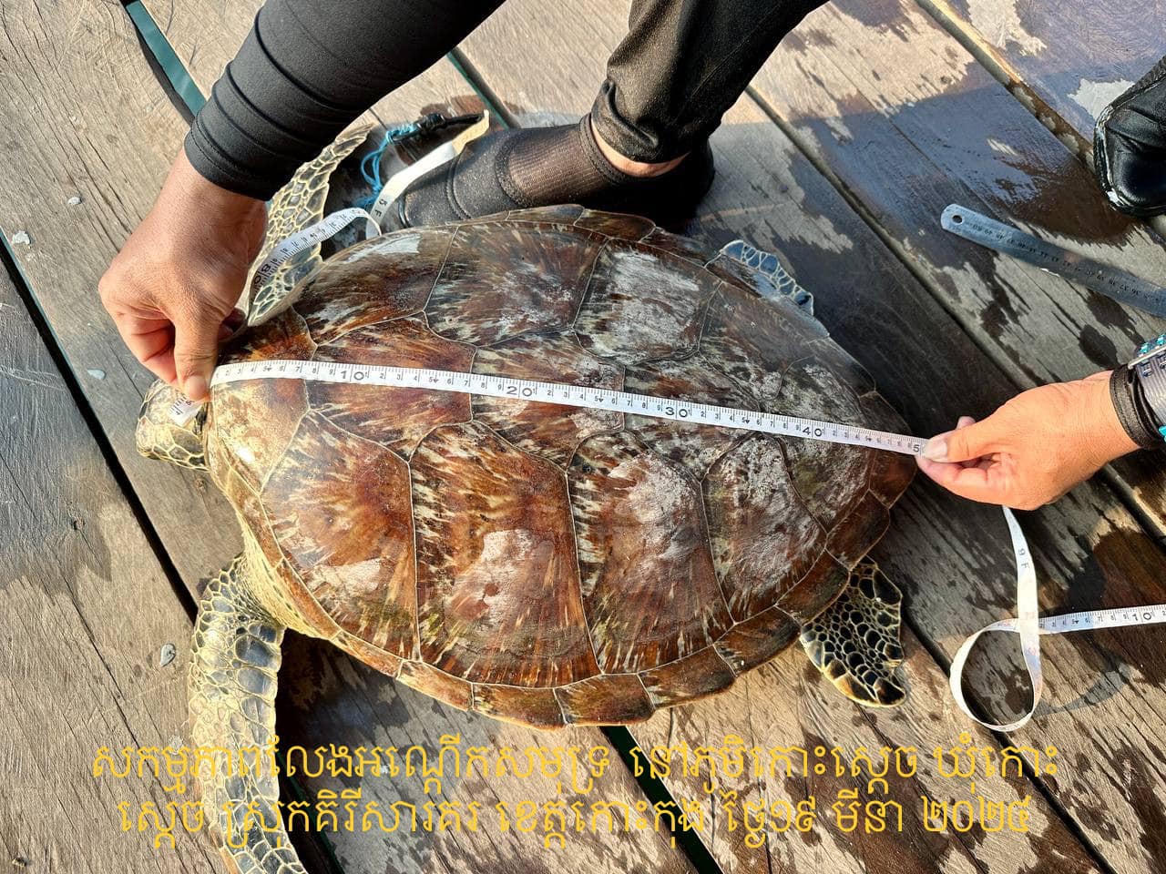 រដ្ឋបាលជលផលបញ្ជាក់ថា អណ្តើកសមុទ្ទទាំងពីរក្បាលដែលអាជ្ញាធររួមជាមួយពលរដ្ឋដោះលែងនាពេលនេះ រួមមាន៖ អណ្ដើកទី១ ទម្ងន់១៣,៧គីឡូក្រាម ទំហំស្នូកបណ្ដោយ៥០សង់ទីម៉ែត្រ ទទឹង៤៦សង់ទីម៉ែត្រ ត្រូវបានកិបស្លាកលេខសម្គាល់ KH2402 ។ រីឯអណ្ដើកទី២ មានទម្ងន់១០,១គីឡូក្រាម ទំហំស្នូកបណ្ដោយ៥០សង់ទីម៉ែត្រ ទទឹង៤៥សង់ទីម៉ែត្រ ត្រូវបានកិបស្លាកសម្គាល់ KH2403។ សូមជម្រាបថា អណ្ដើកសមុទ្ទត្រូវបានចាត់ជាប្រភេទធនធានជលផលសមុទ្ទកំពុងរងគ្រោះថ្នាក់ និងត្រូវបានការពារដោយច្បាប់ស្ដីពីជលផល ដូច្នេះរដ្ឋបាលជលផលអំពាវនាវដល់បងប្អូនប្រជានេសាទទាំងអស់រួមគ្នាការពារ និងអភិរក្សសត្វអណ្ដេីកសមុទ្ទឱ្យបានគង់វង្សសម្រាប់កូនចៅជំនាន់ក្រោយ។