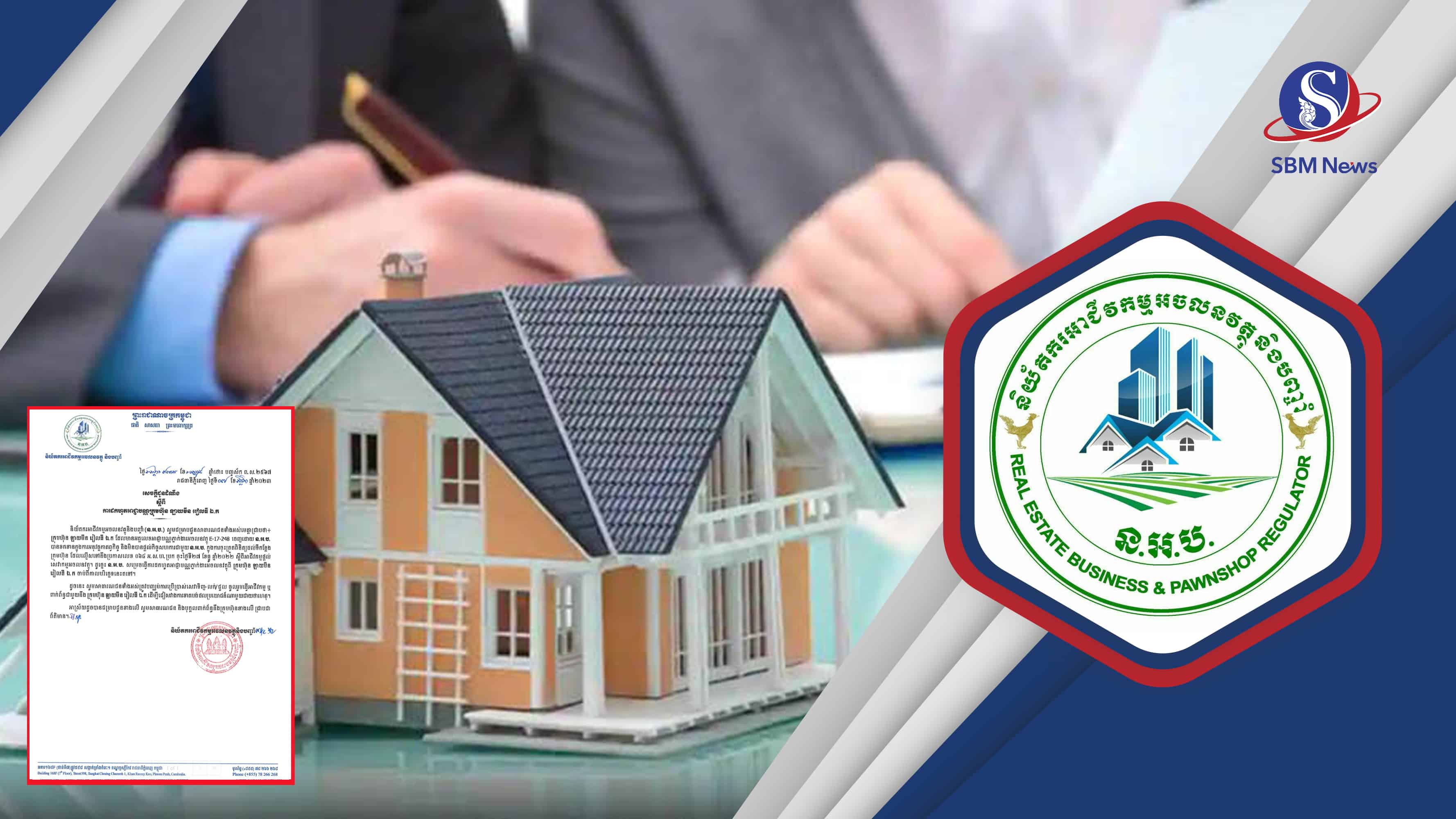 រាជធានីភ្នំពេញ៖ និយ័តករអាជីវកម្មអចលនវត្ថុ និងបញ្ចាំ ហៅកាត់ (ន.អ.ប.) បានចេញសេចក្តីជូនដំណឹងមួយដល់ម្ចាស់អាជីវអាជីវកម្មរអភិវឌ្ឍលំនៅឋាន អាជីវកម្មអភិវឌ្ឍអគារសហកម្មសិទ្ធិ អាជីវកម្មអភិវឌ្ឍដីឡូតិ៍ អាជីវកម្មផ្តល់សេវាកម្មអចលនវត្ថុ អាជីវកម្មបញ្ចាំ និងអាជីវកម្មប្រាតិភោគដោយអនុប្បទាន ត្រូវមកបំពេញកាតព្វកិច្ចស្នើសុំអាជ្ញាបណ្ណនៅ(ន.អ.ប.)ឱ្យបានទាន់ពេលវេលា...។