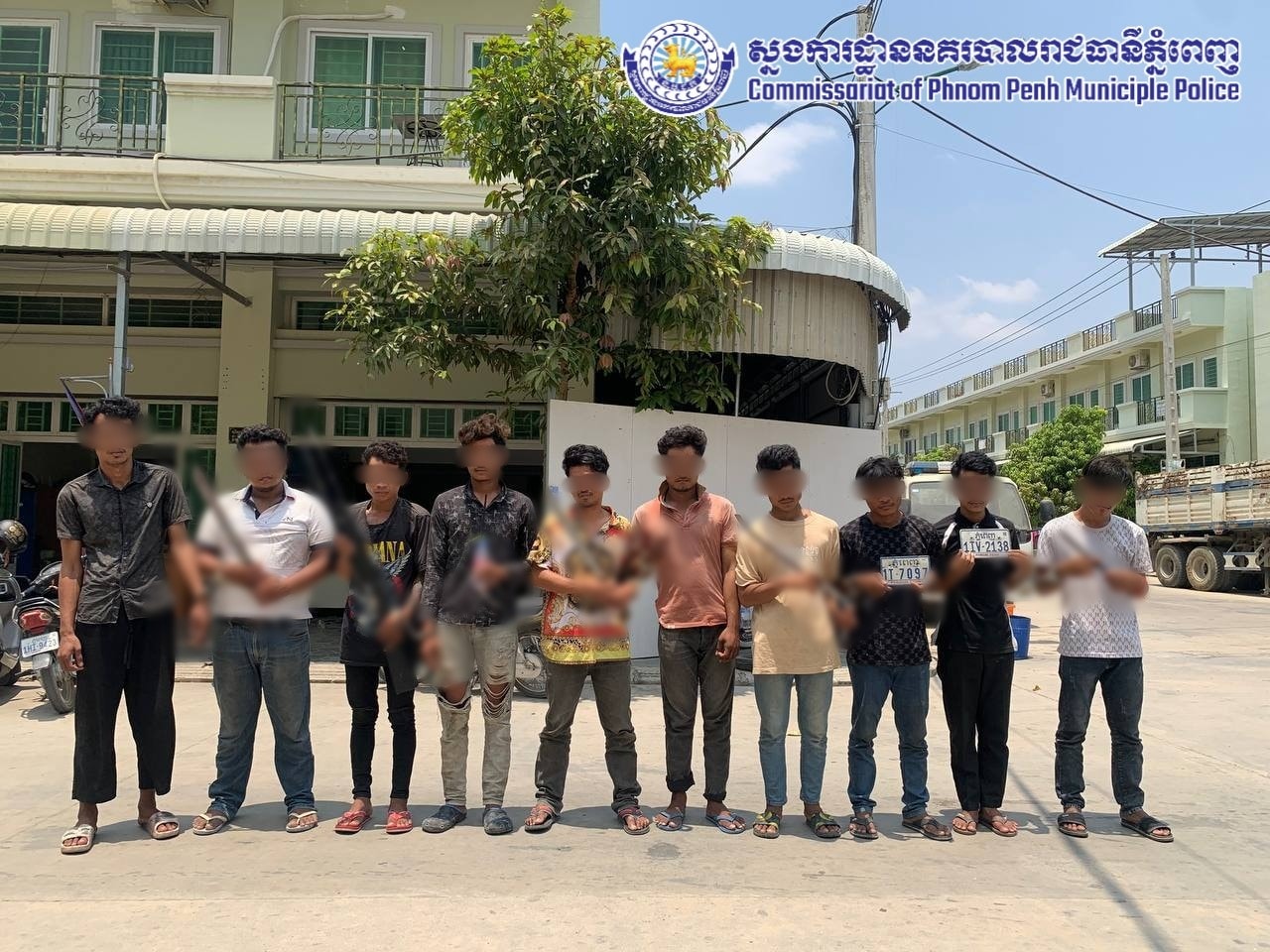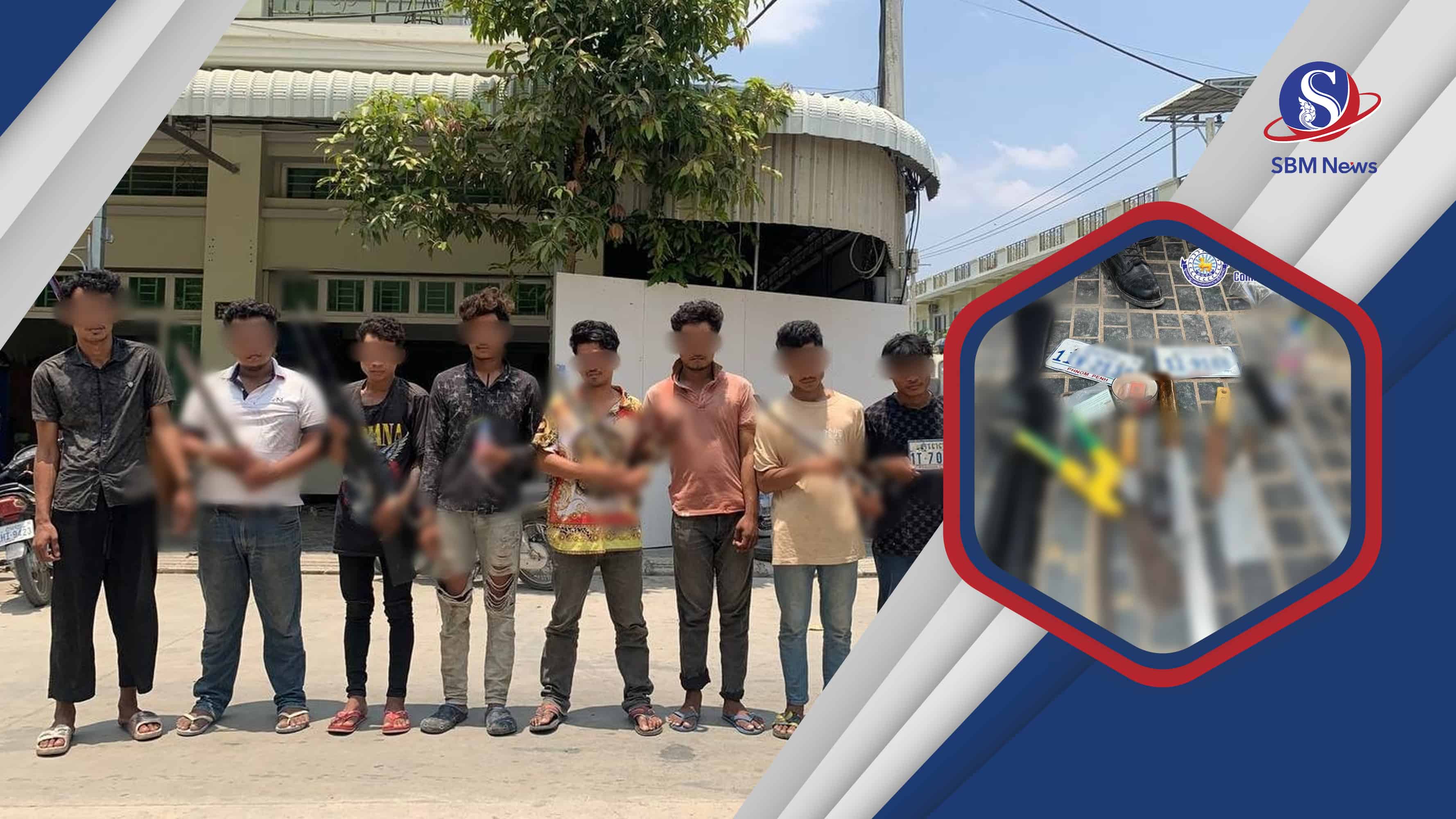 ការឃាត់ខ្លួនក្រុមយុវជនទាំងនោះធ្វើឡើងនៅថ្ងៃទី០៥មេសា អំឡុងពេលកម្លាំងអធិការដ្ឋាននគរបាលខណ្ឌកំបូល ចុះពិនិត្យរដ្ឋបាលតាមបន្ទប់ជួល នៅក្នុងភូមិត្រពាំងឈូក សង្កាត់កន្ទោក ខណ្ឌកំបូល រាជធានីភ្នំពេញ។ របាយការណ៍មួយរបស់ ស្នងការដ្ឋាននគរបាលរាជធានីភ្នំពេញ កាលពីថ្ងៃទី០៦មេសា បានឱ្យដឹងបន្តថា ដោយអនុវត្តតាមគោលនយោបាយ ភូមិ ឃុំ មានសុវត្ថិភាព ដែលជាគោលនយោបាយមួយរបស់រដ្ឋាភិបាលកម្ពុជា ដើម្បីទប់ស្កាត់ភាពអសន្តិសុខ បទល្មើសនានាក្នុងសង្គម នៅវេលាម៉ោង៣ៈ០០នាទីរសៀលកម្លាំងសមត្ថកិច្ច ខណ្ឌកំបូល បានចុះប្រតិបត្តិការ ដោយធ្វើការឆែកឆែនៅក្នុងបន្ទប់ជួលរបស់ក្រុមជនសង្ស័យ ស្ថិតនៅទីតាំងខាង ភ្លាមនោះកម្លាំងសមត្ថកិច្ចក៏បានឃាត់ខ្លួនជនសង្ស័យទាំង១០នាក់ខាងលើ ព្រមទាំងបានដកហូតវត្ថុតាងមួយចំនួនក្នុងនោះរួមមាន៖ ដាវកែច្នៃចំនួន០៣ដើម, ស្លាកលេខម៉ូតូចំនួន០២, ដែកកែច្នៃចុងស្រួចចំនួន០១ និងឧបករណ៍កែច្នៃសម្រាប់ជក់ថ្នាំញៀនចំនួន០១។ ទំព័រហ្វេសប៊ុកផ្លូវការរបស់ ស្នងការដ្ឋាននគរបាលរាជធានីភ្នំពេញ បានបញ្ជាក់ថា បច្ចុប្បន្នជនសង្ស័យខាងលើ កំពុងឃាត់ខ្លួនជាបណ្តោះអាសន្ន នៅអធិការដ្ឋាននគរបាលខណ្ឌកំបូល ដើម្បីកសាងសំណុំរឿងបញ្ជូនទៅសាលាដំបូងរាជធានីភ្នំពេញ ចាត់ការតាមនីតិវិធី។