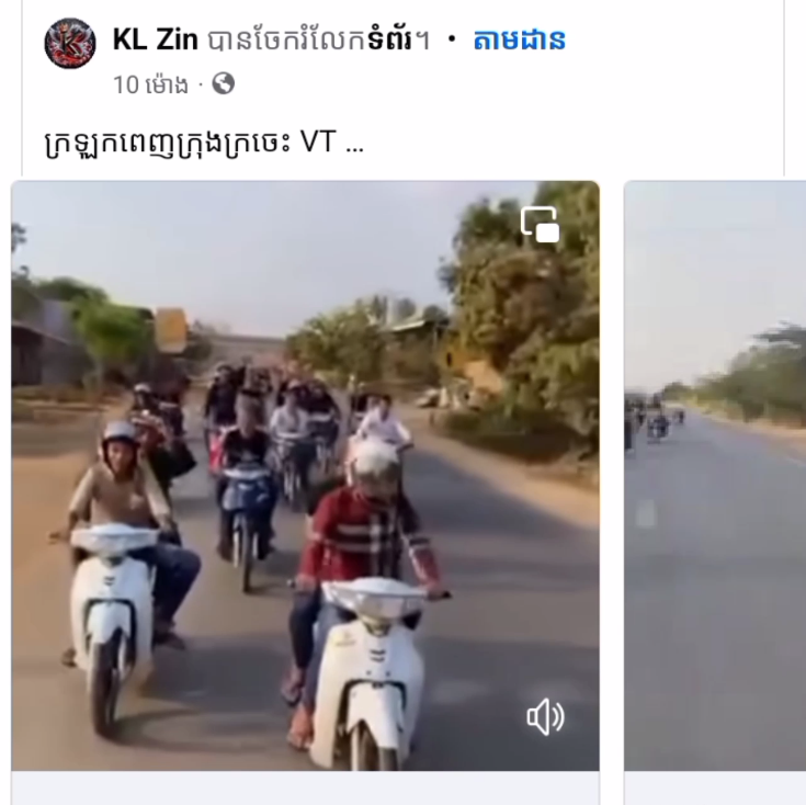 ខេត្តក្រចេះ៖ យុវជនមួយក្រុម ជិះម៉ូតូបង្ហោះលើដងផ្លូវសាធារណៈ និងបានថតវីដេអូផ្សព្វផ្សាយលើបណ្តាញសង្គម ហ្វេសប៊ុក ដោយសរសេរខ្លឹមសារថា«ចង់ក្រឡុកនៅខេត្តក្រចេះ»អមដោយបទភ្លេងផងនោះ ពេលនេះត្រូវបានអាជ្ញាធរឃាត់ខ្លួនយកមកអប់រំណែនាំ...។