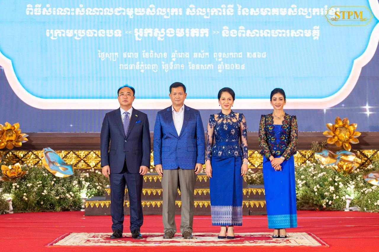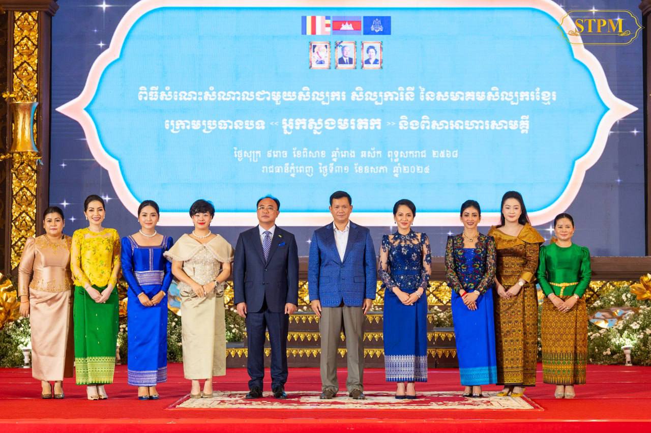 រាជធានីភ្នំពេញ៖ សមាគមសិល្បករខ្មែរបានរៀបចំពិធីអ្នកស្នងមរតក ក្រោមពាក្យស្លោក «រក្សាចាស់ បង្កើត និងអភិវឌ្ឍថ្មី» ដែលរៀបចំឡើងនៅមជ្ឈមណ្ឌលសន្និបាត និងពិពណ៌អន្តរជាតិជ្រោយចង្វា(CCIC) នាល្ងាចថ្ងៃទី៣១ ខែឧសភា ឆ្នាំ២០២៤ ដោយមានសម្តេចធិបតី ហ៊ុន ម៉ាណែត នាយករដ្ឋមន្ត្រីកម្ពុជា និងលោកជំទាវបណ្ឌិត ពេជ ចន្ទមុន្នី ហ៊ុនម៉ាណែត អញ្ជើញជាអធិបតី។