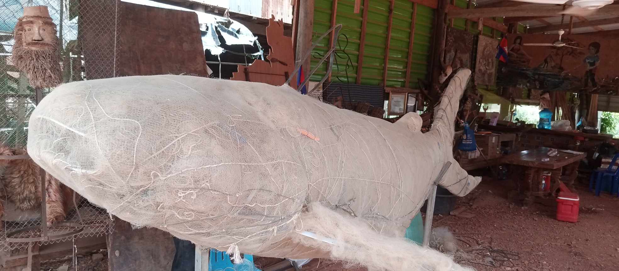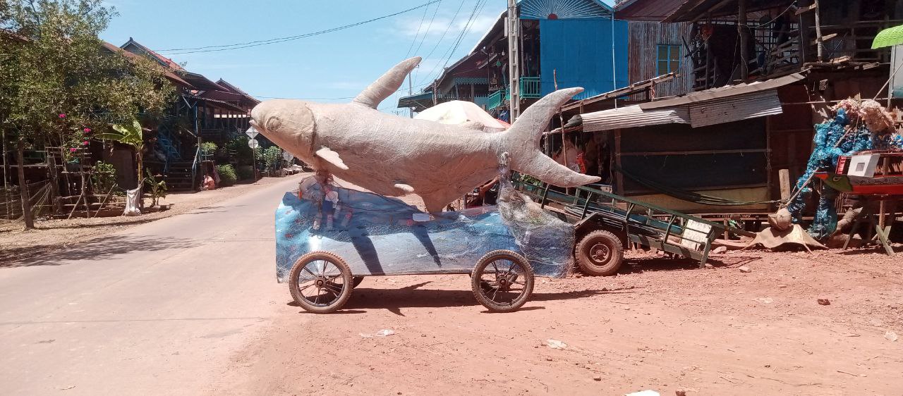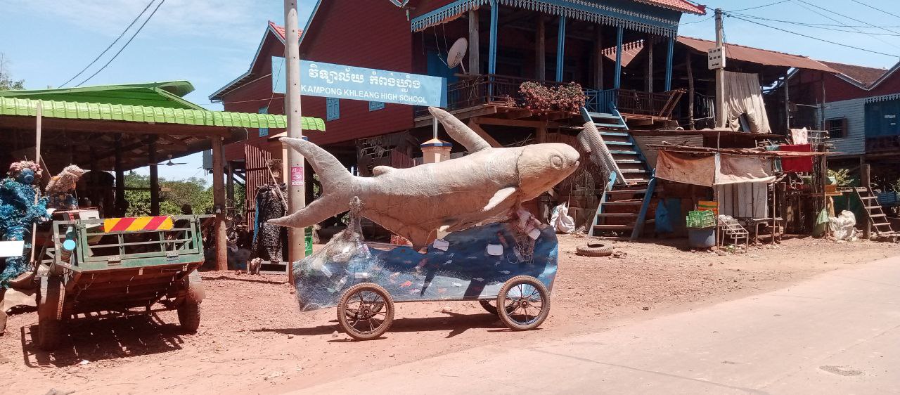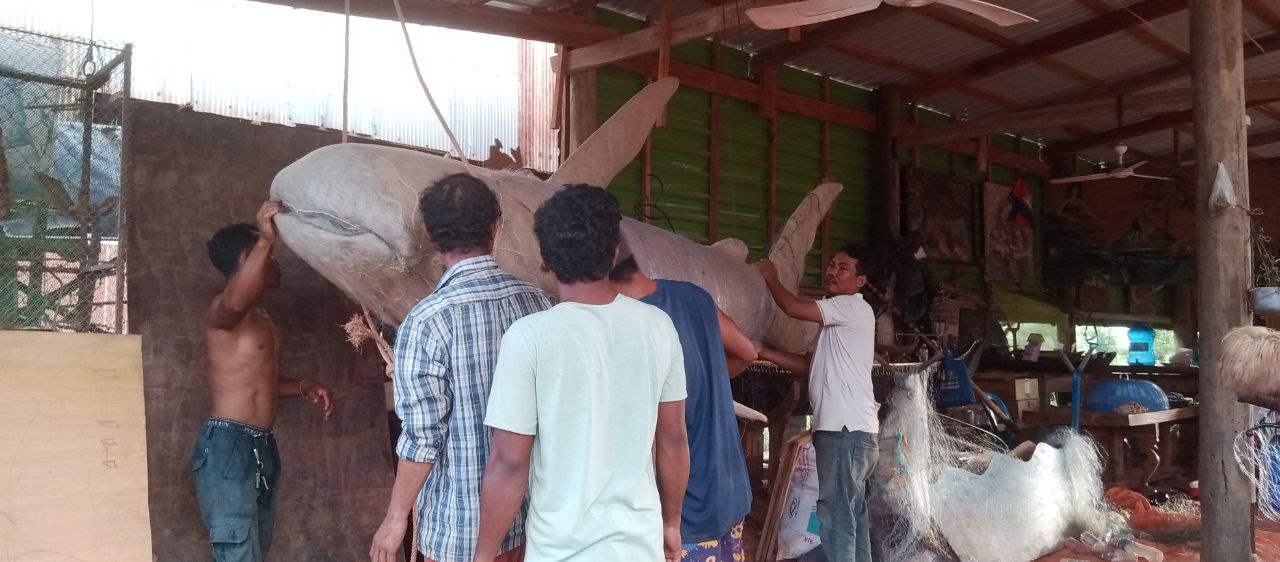 រាជធានីភ្នំពេញ៖ ដើម្បីអបអរសាទរ «ទិវាបរិស្ថានពិភពលោកឆ្នាំ២០២៤» សិល្បករនៅក្នុងសហគមន៍នៃភូមិនេសាទផ្ទះមានជើងសសរខ្ពស់ៗ នៃឃុំកំពង់ឃ្លាំង បឹងទន្លេសាប បានប្រមូលសំណាញ់មងដែលបោះចោលពាសពេញទន្លេ និងតាមច្រាំងទន្លេប្រមាណ ៩៩គីឡូក្រាម មកសាងសងជារូបសំណាក «ត្រីរាជ» ក្នុងន័យលើកកម្ពស់ការយល់ដឹងពីការបោះចោលសំណល់ប្លាស្ទិច ក៏ដូចជាសំណាញ់មងក្នុងសហគមន៍ផ្ទាល់..។