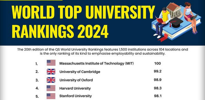 លំដាប់ទី១៖ វិទ្យាស្ថានបច្ចេកវិទ្យាម៉ាសាឈូសេត (Massachusetts Institute of Technology) គឺជាសាកលវិទ្យាល័យឯកជនមួយ ដែលមានមូលដ្ឋាននៅទីក្រុងខេមប្រ៊ីជ Cambridge រដ្ឋម៉ាសាឈូសេត សហរដ្ឋអាម៉េរិក ត្រូវបានបង្កើតឡើងក្នុងឆ្នាំ១៨៦១ ដើម្បីផ្តល់កម្មវិធីសិក្សាស្រាវជ្រាវដ៏ល្អបំផុតដល់សិស្សនិស្សិត។ សាកលវិទ្យាល័យដែលជាប់ចំណាត់ថ្នាក់កំពូលក្នុងពិភពលោកនេះ គឺជាសាលាបញ្ចប់ការសិក្សាវិស្វកម្ម មានចំណាត់ថ្នាក់ខ្ពស់បំផុត។ ក្រៅពីនេះ កម្មវិធីសិក្សាដ៏ពេញនិយមផ្សេងទៀតរួមមាន៖ គីមីវិទ្យា រូបវិទ្យា គណិតវិទ្យា ចិត្តវិទ្យា និងសេដ្ឋកិច្ច។