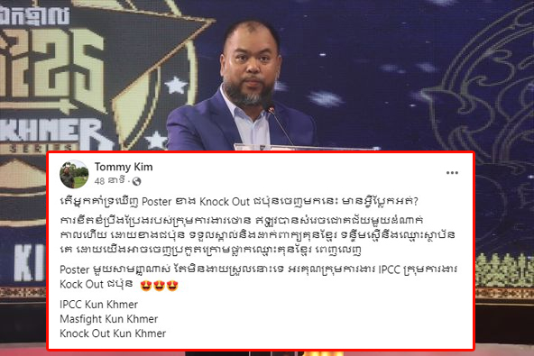 លោក គីម ស៊្រុនកុសល ហៅថមីគីម តំណាងស្ថាប័ន IPCC ប្រចាំប្រទេសកម្ពុជា បានបង្ហោះសារនៅលើគណនីហ្វេសប៊ុកផ្លូវការរបស់លោក នៅរសៀលថ្ងៃទី០២កក្កដា នេះថា «តើអ្នកគាំទ្រឃើញ Poster ខាង Knock Out ជប៉ុន ចេញមកនេះ មានអ្វីប្លែកអត់? ការខិតខំប្រឹងប្រែងរបស់ក្រុមការងារថោន ឥឡូវបានសំរេចជោគជ័យមួយដំណាក់កាលហើយ ដោយខាងជប៉ុន ទទួលស្គាល់ និងដាក់ពាក្យគុនខ្មែរ ទន្ទឹមស្មើនឹងឈ្មោះស្ថាប័នគេ ដោយយើងអាចចេញប្រកួតក្រោមផ្លាកឈ្មោះគុនខ្មែរ ពេញលេញ Poster មួយសាមញ្ញណាស់ តែមិនងាយស្រួលនោះទេ អរគុណក្រុមការងារ IPCC ក្រុមការងារ Kock Out ជប៉ុន"។
