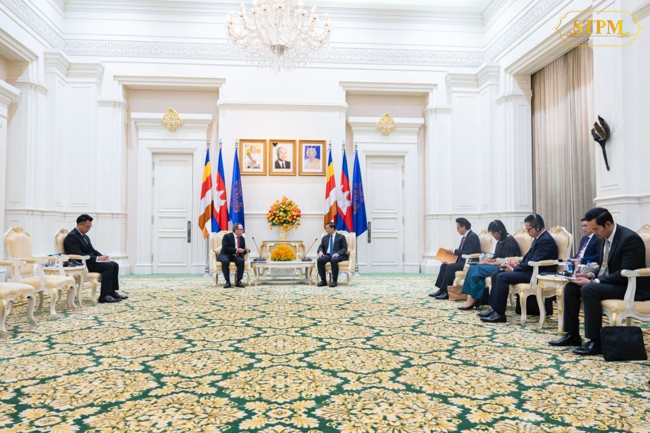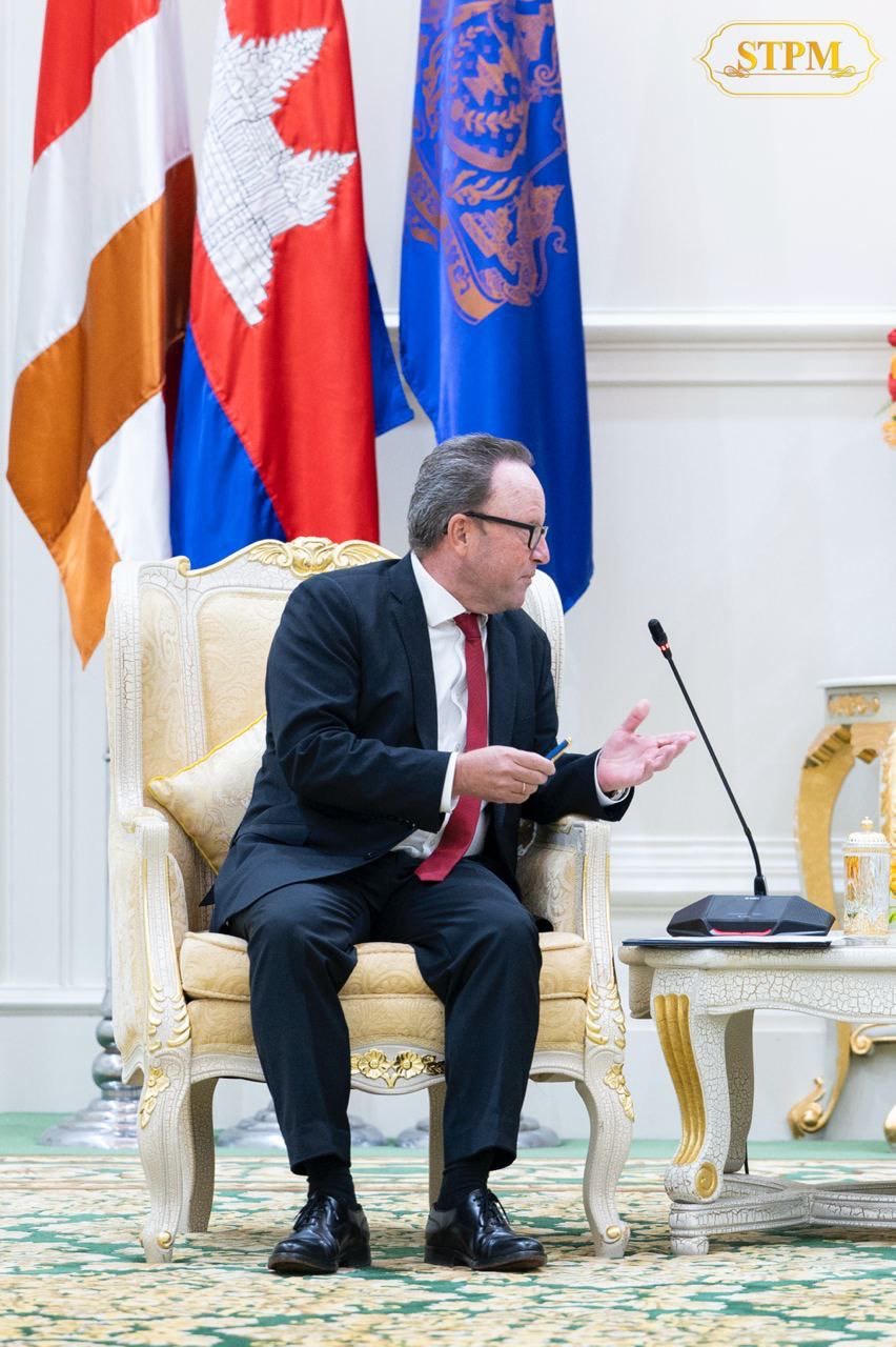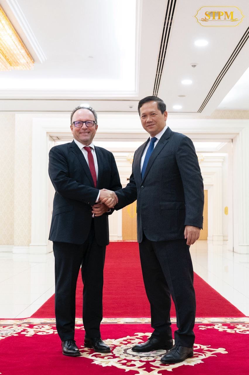 រាជធានីភ្នំពេញ៖ ឯកឧត្តម Stefan Messerer ឯកអគ្គរដ្ឋទូតនៃសាធារណរដ្ឋសហព័ន្ធអាល្លឺម៉ង់ប្រចាំកម្ពុជា បានចូលជួបសម្ដែងការគួរសម និងពិភាក្សាការងារជាមួយសម្តេចធិបតី ហ៊ុន ម៉ាណែត នាយករដ្ឋមន្រ្តីនៃកម្ពុជា នៅវិមានសន្តិភាព នាថ្ងៃទី២កក្កដា ឆ្នាំ២០២៤។