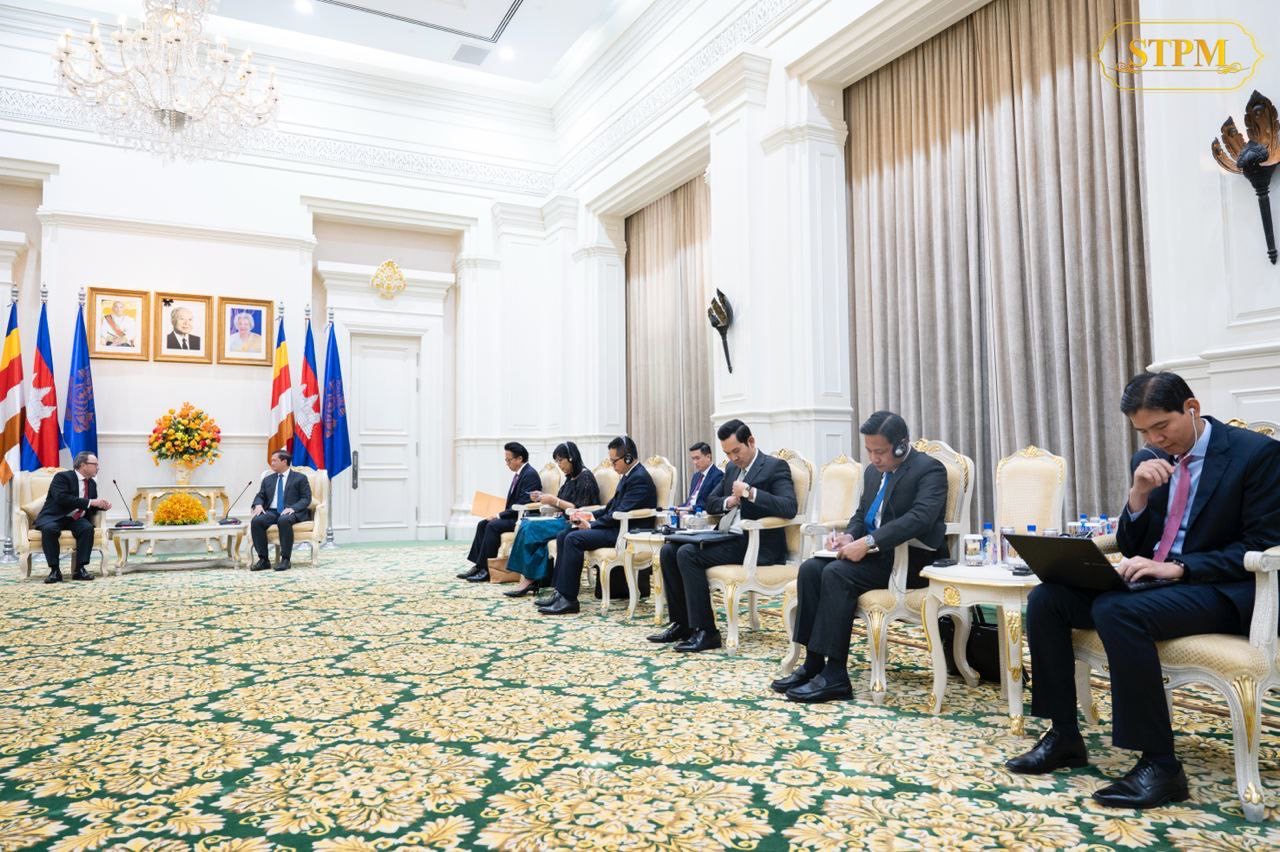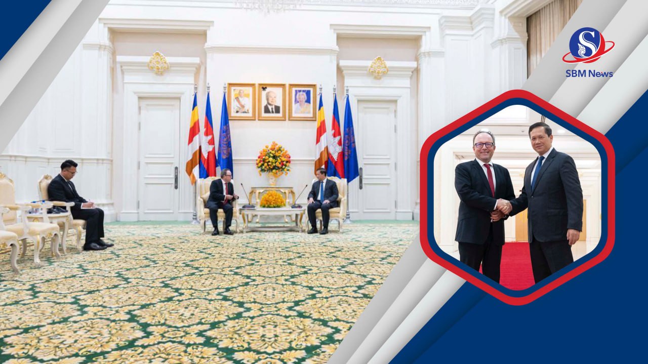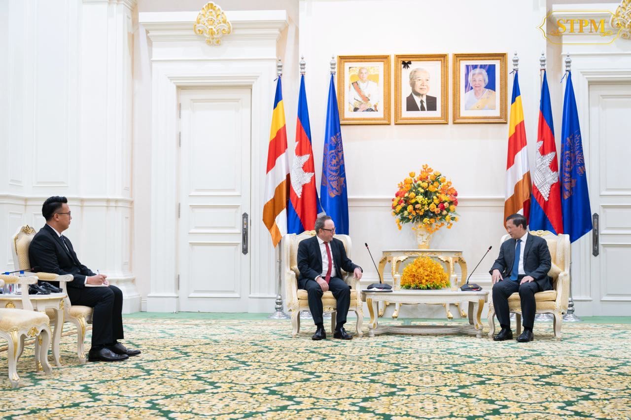 រាជធានីភ្នំពេញ៖ ឯកឧត្តម Stefan Messerer ឯកអគ្គរដ្ឋទូតនៃសាធារណរដ្ឋសហព័ន្ធអាល្លឺម៉ង់ប្រចាំកម្ពុជា បានចូលជួបសម្ដែងការគួរសម និងពិភាក្សាការងារជាមួយសម្តេចធិបតី ហ៊ុន ម៉ាណែត នាយករដ្ឋមន្រ្តីនៃកម្ពុជា នៅវិមានសន្តិភាព នាថ្ងៃទី២កក្កដា ឆ្នាំ២០២៤។