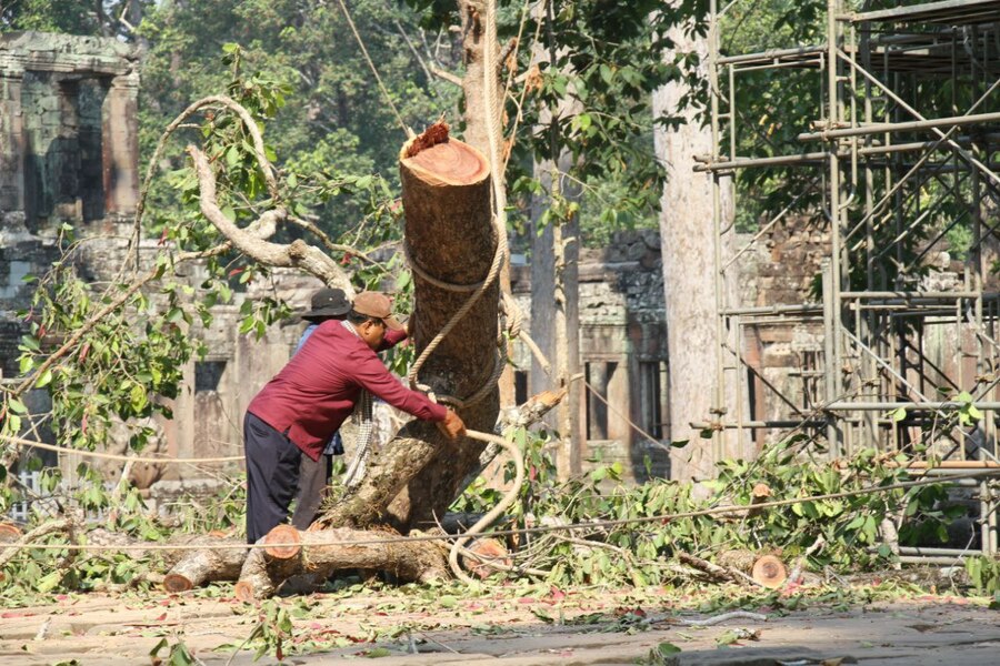 គួររំលឹកដែរថា នៅដើមខែកក្កដា ឆ្នាំ២០២៤នេះ អាជ្ញាធរជាតិអប្សរាបានចាប់ផ្តើមកាត់ដកហូតដើមឈើ និងកាត់ក្រីមែកឈើដែលមានហានិភ័យខ្ពស់នៅតាមបរិវេណប្រាសាទ និងទីតាំងសំខាន់ៗ ក្នុងរមណីយដ្ឋានអង្គរចំនួន៧៧ដើម ដើម្បីធានាដល់សុវត្ថិភាពភ្ញៀវទេសចរ ព្រមទាំងសាធារណជន។ ប៉ុន្តែសកម្មភាពទាំងអស់នេះត្រូវបានទទួលរងការរិះគន់ពីសំណាក់ពលរដ្ឋយ៉ាងចាស់ដៃ ពោលគឺពួកគេបារម្ភថា អាជ្ញាធរអាចនឹងប្រើលេសខ្លាចដើមឈើបាក់រលំនិងប៉ះពាល់អ្នកទេសចរ ដើម្បីកាប់ឈើមានតម្លៃលក់ទៅវិញ៕