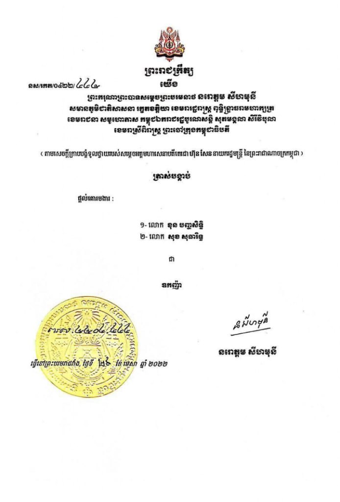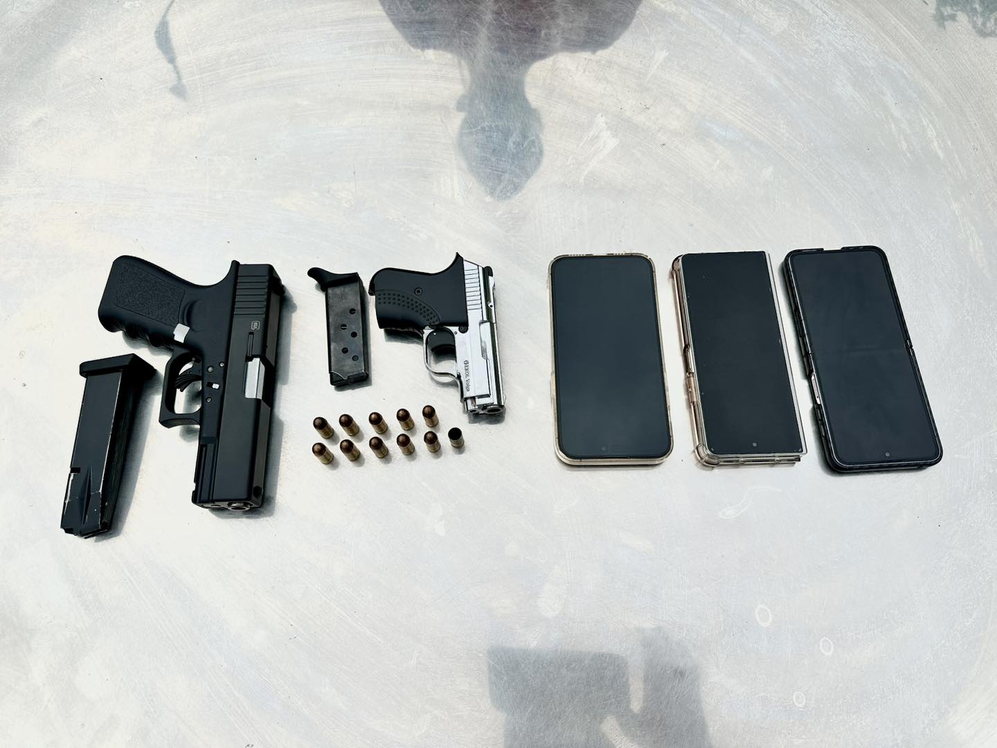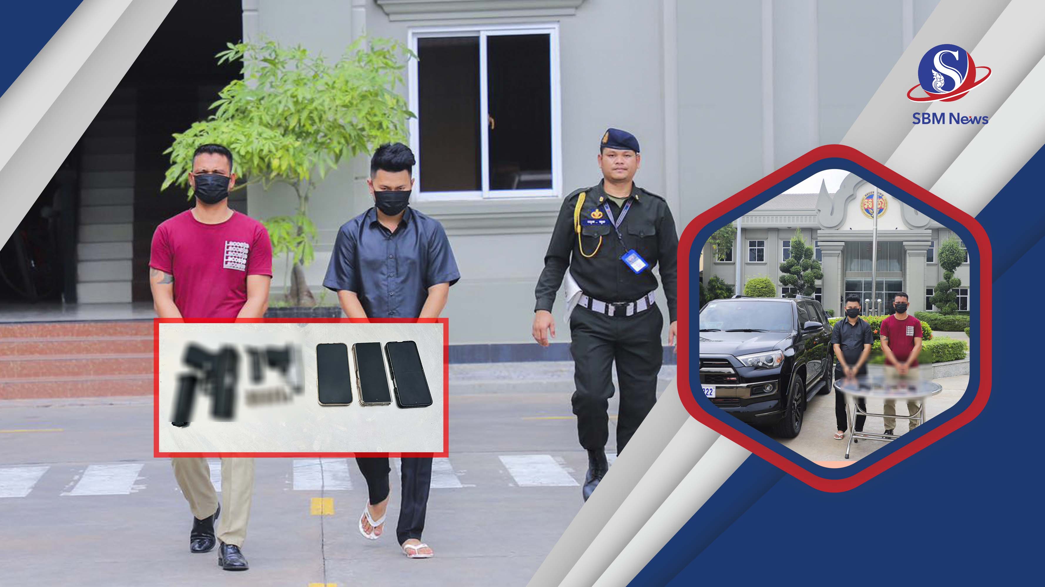 អាវុធហត្ថបន្ថែមថា ប្រតិបត្តិការនោះកម្លាំងជំនាញដកហូតអាវុធខ្លីបាន២ដើម ម៉ាក GLOCK19 ជាអាវុធដែលជនសង្ស័យកាន់ធ្វើសកម្មភាពបាញ់សម្ញែង និងមួយដើមទៀតម៉ាក EKOL VOLGA។ សមត្ថកិច្ចពិនិត្យឃើញក្នុងរថយន្តរបស់ជនសង្ស័យ។ ក្រោយឃាត់ខ្លួន ជនសង្ស័យ ឈ្មោះ ខុន បញ្ចសិទ្ធិ ដែលគេដឹងថា ទើបនឹងទទួលបានងារជា «ឧកញ៉ា» កាលពីឆ្នាំ២០២២ បន្ទាប់ពីទទួលបានការត្រាស់បង្គាប់ផ្តល់គោរមងាពីអង្គព្រះមហាក្សត្រ និងជាអគ្គនាយក សហគ្រាស វ័ន រ៉ូយ៉ាល ស៊ីធី គឺជាអ្នកមានជាន់ថ្មី ដោយសារការរកស៊ីលក់ដីធ្លី បានសារភាពទទួលស្គាល់ថា អាវុធខ្លីពិតជារបស់ខ្លួនមែន តែអ្នកបាញ់គឺជាតៃកុងរថយន្តខ្លួននោះទេ រីឯតៃកុងរថយន្ត បានសារភាពទទួលស្គាល់ថា ខ្លួនពិតជាអ្នកបាញ់ដូចសម្តីមេខ្លួនបានលើកឡើងពិតប្រាកដមែន។