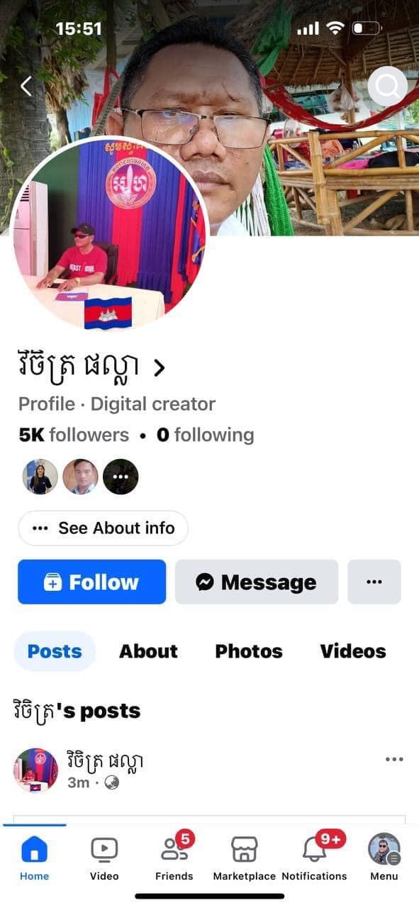 រាជធានីភ្នំពេញ៖ ក្រោយពីមានបុគ្គលមួយរូបក្លែងបន្លំអត្តសញ្ញាណ និងពាក់ឯកសណ្ឋានតាំងខ្លួនជាមន្រ្តីកងរាជកងរាជអាវុធហត្ថ លោក អេង ហ៊ី អ្នកនាំពាក្យកងរាជអាវុធហត្ថលើផ្ទៃប្រទេស បានអំពាវនាវឱ្យជននោះបញ្ឈប់រាល់សកម្មភាព ដោយព្រមានធ្វើការស្រាវជ្រាវ និងមានចំណាត់ការតាមផ្លូវច្បាប់ ដើម្បីចៀសវាងការយល់ច្រឡំ និងប៉ះពាល់ដល់ស្ថាប័នទាំងមូល...។