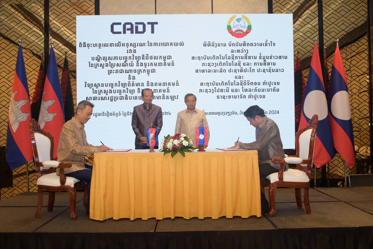 ទស្សនកិច្ចផ្លូវការនៅរដ្ឋធានីវៀងច័ន្ទន៍នេះ បានធ្វើឡើងចាប់ពីថ្ងៃទី២៦ ដល់ថ្ងៃទី២៨ ខែកក្កដា ឆ្នាំ២០២៤ តបតាមការអញ្ជើញរបស់ឯកឧត្តម បូវៀងខាំ វង្សតារា Boviengkham Vongdara រដ្ឋមន្ត្រីក្រសួងបច្ចេកវិទ្យា និងគមនាគមន៍ឡាវ ក្នុងគោលបំណងពង្រឹងកិច្ចសហប្រតិបត្តិការរវាងក្រសួងទាំងពីរ ក៏ដូចជារឹតចំណងមិត្តភាពរវាងប្រទេសទាំងពីរឱ្យកាន់តែល្អប្រសើរថែមទៀត។ ស្របជាមួយគ្នានោះ បណ្ឌិត្យសភាបច្ចេកវិទ្យាឌីជីថលកម្ពុជា នៃ ក.ប.ទ. បានចុះអនុស្សរណៈនៃការយោគយល់ ជាមួយវិទ្យាស្ថានបច្ចេកវិទ្យាព័ត៌មាន និងគមនាគមន៍ នៃក្រសួងបច្ចេកវិទ្យា និងគមនាគមន៍ ហើយឆ្លៀតក្នុងឱកាសនោះផងដែរ ក.ប.ទ. បានសម្រេចផ្តល់អាហារូបករណ៍សិក្សា ថ្នាក់បរិញ្ញាបត្រជាន់ខ្ពស់ ជំនាញបច្ចេកវិទ្យាឌីជីថលចំនួន៥កន្លែង និងថ្នាក់បរិញ្ញាបត្រចំនួន១០កន្លែង ដើម្បីជួយបណ្តុះបណ្តាល ពង្រឹងកិច្ចសហប្រតិបត្តិការលើការអភិវឌ្ឍធនធានមនុស្សក្នុងវិស័យឌីជីថល រវាងក្រសួងទាំងពីរ។