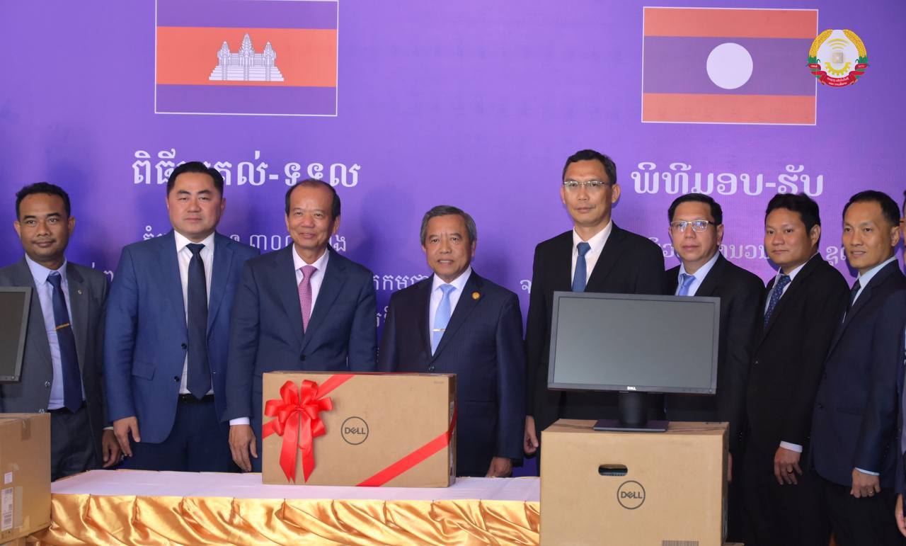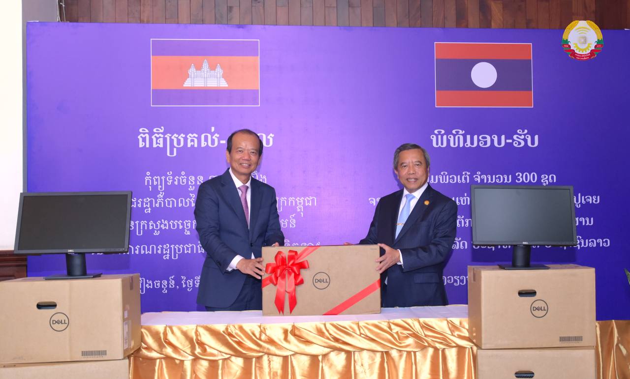 រដ្ឋធានីវៀងច័ន្ទន៍៖ ក្នុងឱកាសបំពេញទស្សនកិច្ចផ្លូវការ ឯកឧត្តម ជា វ៉ាន់ដេត រដ្ឋមន្ត្រីក្រសួងប្រៃសណីយ៍ និងទូរគមនាគមន៍ (ក.ប.ទ.) បាននាំយកនូវកុំព្យូទ័រចំនួន៣០០គ្រឿងដែលជាអំណោយរបស់រាជរដ្ឋាភិបាលកម្ពុជា ជូនចំពោះក្រសួងបច្ចេកវិទ្យា និងគមនាគមន៍ នៃសាធារណរដ្ឋប្រជាធិបតេយ្យប្រជាមានិតឡាវ និងផ្តល់អាហារូបករណ៍ជំនាញបច្ចេកវិទ្យាឌីជីថលសរុប១៥កន្លែង។