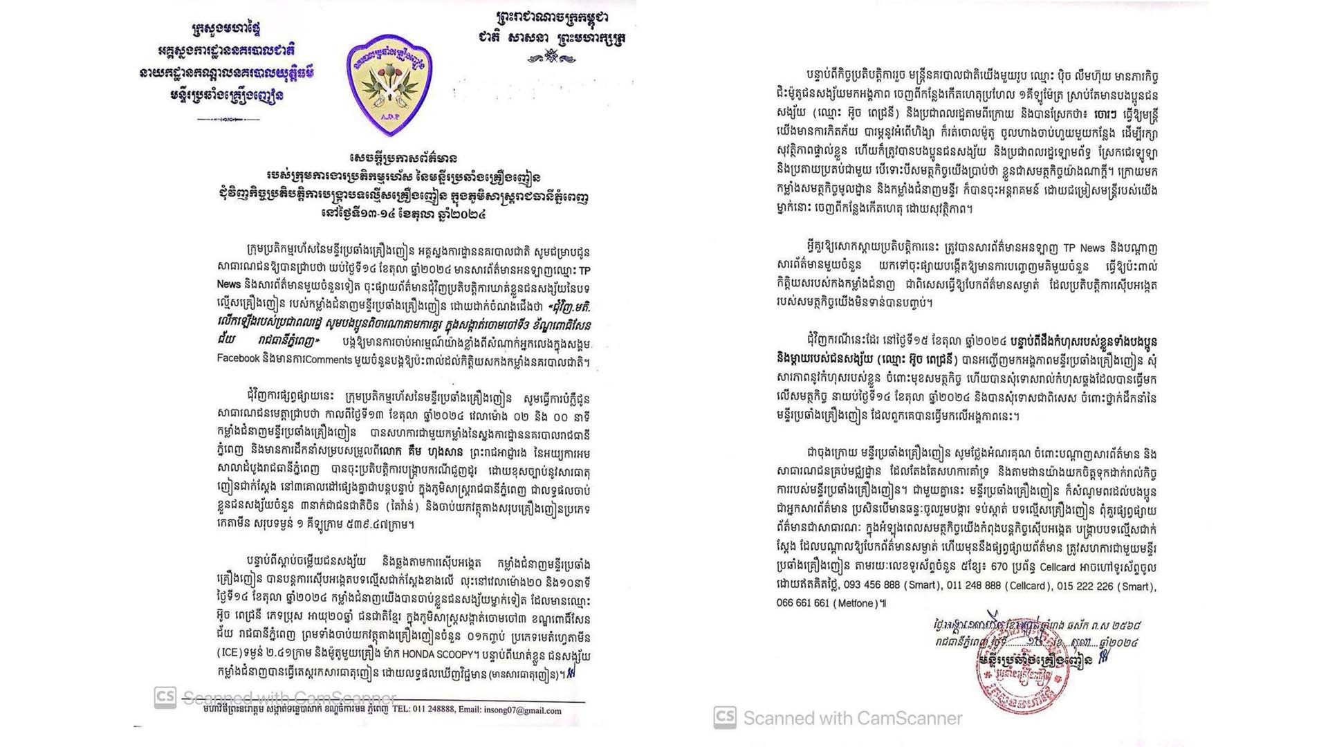 ផ្អែកតាមលិខិតបំភ្លឺរបស់មន្ទីរប្រឆាំងគ្រឿងញៀន ចុះថ្ងៃទី១៥តុលា ឆ្នាំ២០២៤ បានបង្ហាញការសោកស្ដាយ ក្រោយសារព័ត៌មានក្នុងស្រុកមួយ ចេញផ្សាយវីដេអូបង្ហាញនៅសកម្មភាពសមត្ថកិច្ចចុះប្រតិបត្តិការបង្ក្រាបគ្រឿងញៀន ត្រូវបានពលរដ្ឋឆោឡោ ដេញឃាត់កម្លាំងជំនាញមិនឱ្យអនុវត្តភារកិច្ចដោយភ្ជាប់ជាមួយចំណងជើងថា៖«ជុំវិញមតិលើកឡើងរបស់ប្រជាពលរដ្ឋ សូមបងប្អូនពិចារណាតាមការគួរ ក្នុងសង្កាត់ចោមចៅទី១ ខណ្ឌពោធិ៍សែនជ័យ រាជធានីភ្នំពេញ»។ មន្ទីរប្រឆាំងគ្រឿងញៀន ថា ក្រោយសារព័ត៌មានអនឡាញក្នុងស្រុកមួយ យកទៅចុះផ្សាយបង្កើតឱ្យមានការបញ្ចេញមតិមួយចំនួន ធ្វើឱ្យប៉ះពាល់កិត្តិយសរបស់កងកម្លាំងជំនាញ ជាពិសេស ធ្វើឱ្យបែកព័ត៌មានសម្ងាត់ដែលប្រតិបត្តិការស៊ើបអង្កេតរបស់សមត្ថកិច្ចមិនទាន់បានបញ្ចប់។