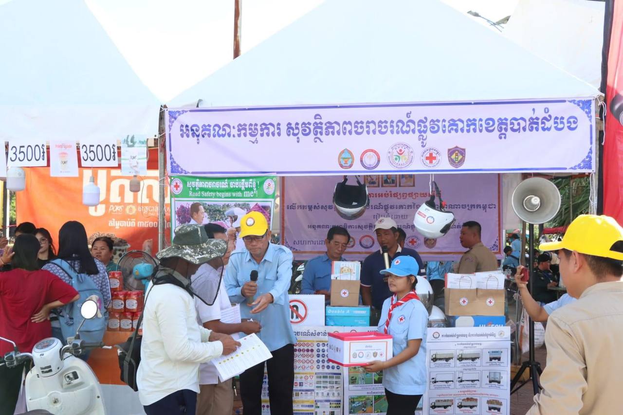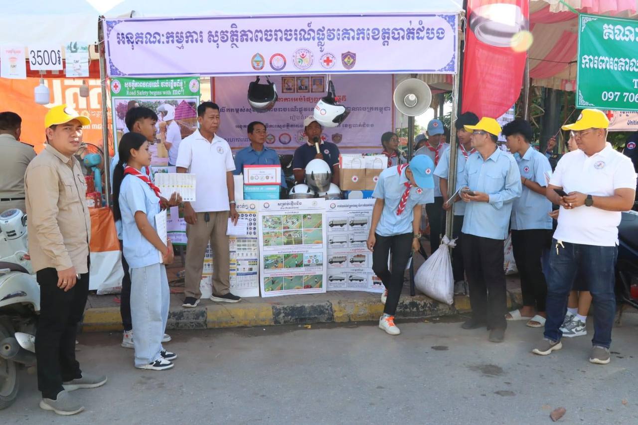 ខេត្តបាត់ដំបង៖ ក្នុងឱកាសនៃពិធីបុណ្យអុំទូក បណ្តែតប្រទីប នៅខេត្តបាត់ដំបង កាលពីរសៀលថ្ងៃទី១៦តុលា កាកបាទក្រហមកម្ពុជាសាខាខេត្ត សហការជាមួយមន្ទីរសាធារណការ និងដឹកជញ្ជូន និងការិយាល័យចរាចណ៍ផ្លូវគោក បានចុះធ្វើយុទ្ធនាការសុវត្ថិភាពចរាចរណ៍ ដើម្បីបញ្ជ្រាបចំណេះដឹង ស្តីពីគ្រោះថ្នាក់ចរាចរណ៍ដល់ពលរដ្ឋក្នុងតំបន់។