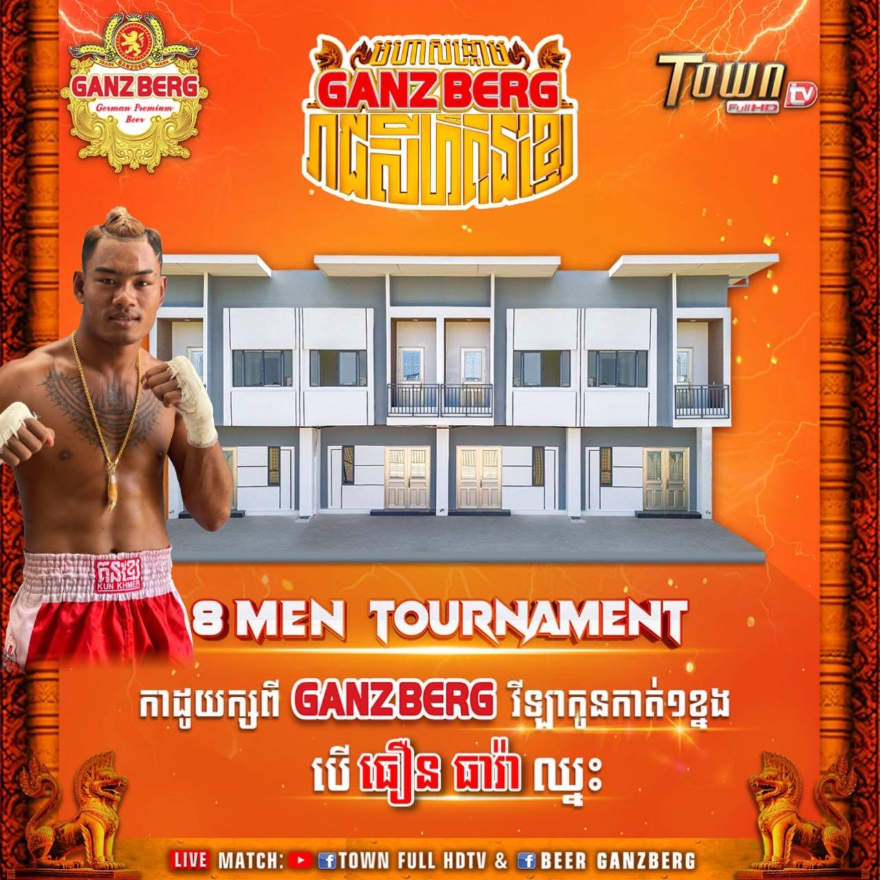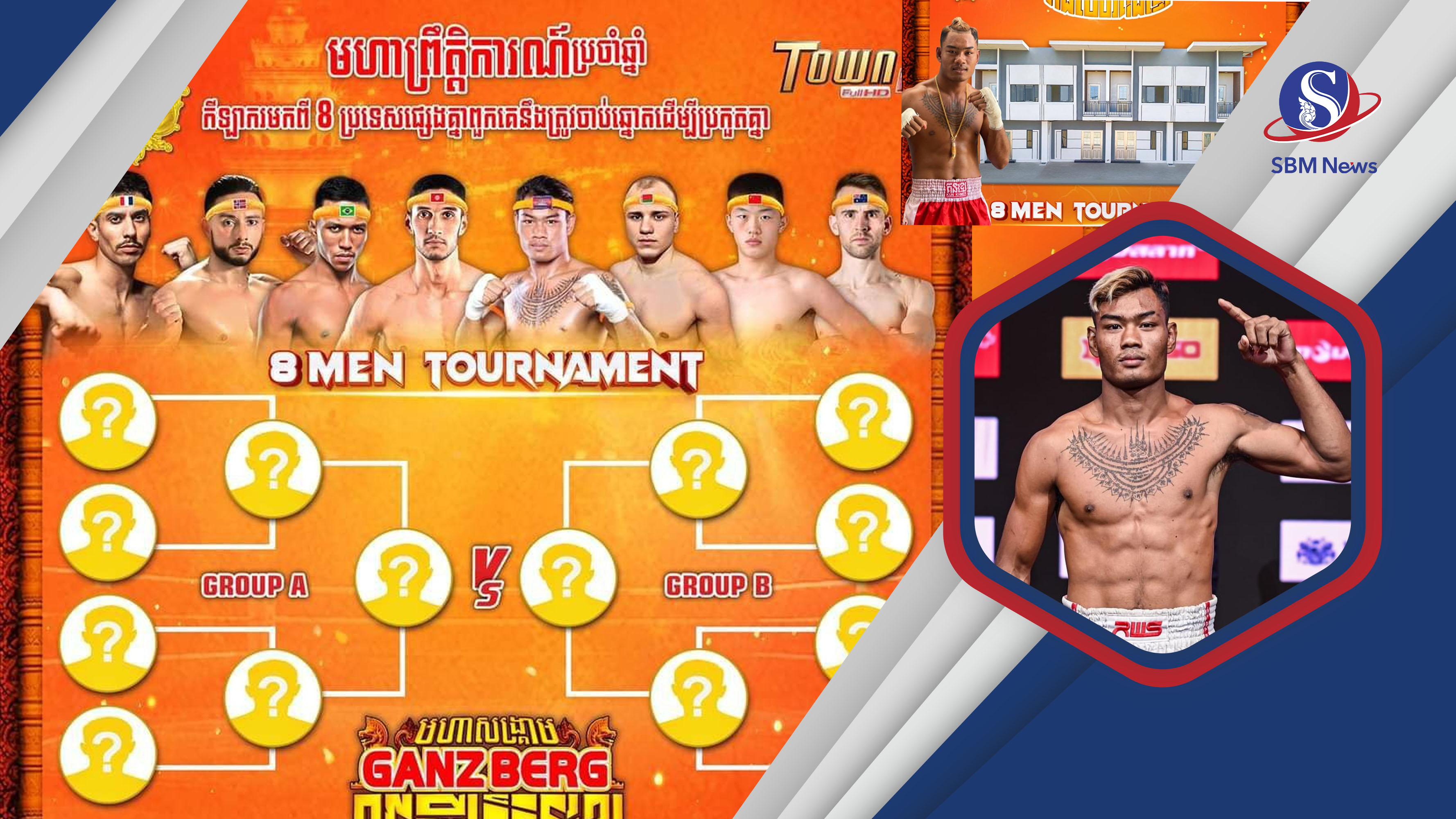 គុនខ្មែរ៖ ព្រឹត្តិការណ៍ប្រដាល់គុនខ្មែរជើងឯក៨ប្រទេស ឬ 8 MEN TOURNAMENT ដែលរៀបចំឡើងដោយស្ថានីយទូរទស្សន៍ថោន និងមានទីតាំងក្បែរដីឡូតិ៍វត្តស្ងួនពេជ្រ ក្នុងខណ្ឌកំបូល ប្រជុំទៅដោយកីឡាករជើងខ្លាំងមកពី៨ប្រទេសរួមទាំងកម្ពុជាជាម្ចាស់ផ្ទះផងនោះ និងធ្វើការប្រកួតប្រជែងគ្នាជាលក្ខណៈវិលជុំជម្រុះ ដើម្បីដណ្តើមយកខ្សែក្រវាត់កម្រិតពិភពលោក និងផ្ទះវីឡាកូនកាត់មួយខ្នងសម្រាប់កីឡាករកម្ពុជា ធឿន ធារ៉ា បើឈ្នះគ្រប់ការប្រកួតទាំងអស់ នាថ្ងៃទី១៦វិច្ឆិកាឆាប់ៗខាងមុខនេះ...។