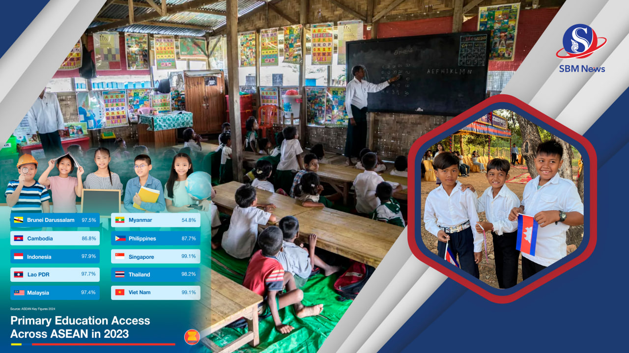 ចំណេះដឹងទូទៅ៖ សិទ្ធិទទួលបានការអប់រំ គឺជាសិទ្ធិអំណាចមួយដែលមានមកតាំងពីកំណើត ខណៈការទទួលបានការអប់រំប្រកបដោយគុណភាព គឺជាសិទ្ធិជាមូលដ្ឋានសម្រាប់កុមារគ្រប់រូប។ ទាំងក្នុងប្រទេសអភិវឌ្ឍន៍ និងប្រទេសកំពុងអភិវឌ្ឍ ការអប់រំមានសារសំខាន់ណាស់ ទន្ទឹមនឹងប្រទេសកំពុងអភិវឌ្ឍត្រូវការការអប់រំជាចាំបាច់ ដើម្បីដើរតាមឱ្យទាន់ប្រទេសអភិវឌ្ឍក្នុងឆាកអន្តរជាតិ។ ថ្ងៃនេះ SBM News នឹងលម្អិតអំពីអត្រាកុមារចុះឈ្មោះចូលរៀន ក្នុងការអប់រំបឋមសិក្សានៅទូទាំងបណ្តាអាស៊ានដោយគិតត្រឹមឆ្នាំ២០២៣។ ចាំមើលទាំងអស់គ្នា តើកម្ពុជាស្ថិតនៅលេខរៀងទីប៉ុន្មាន? ហើយមានប៉ុន្មានភាគរយ?