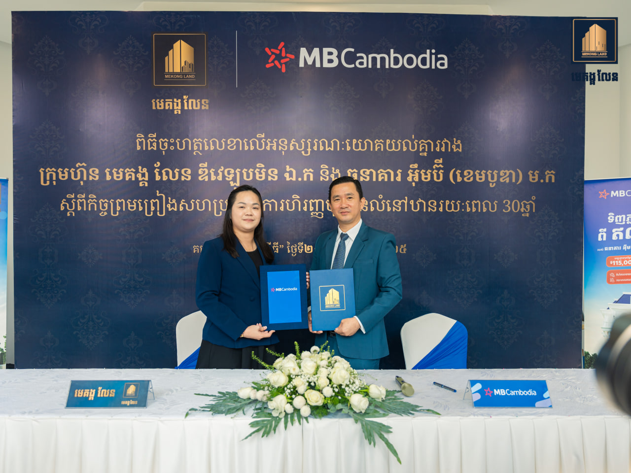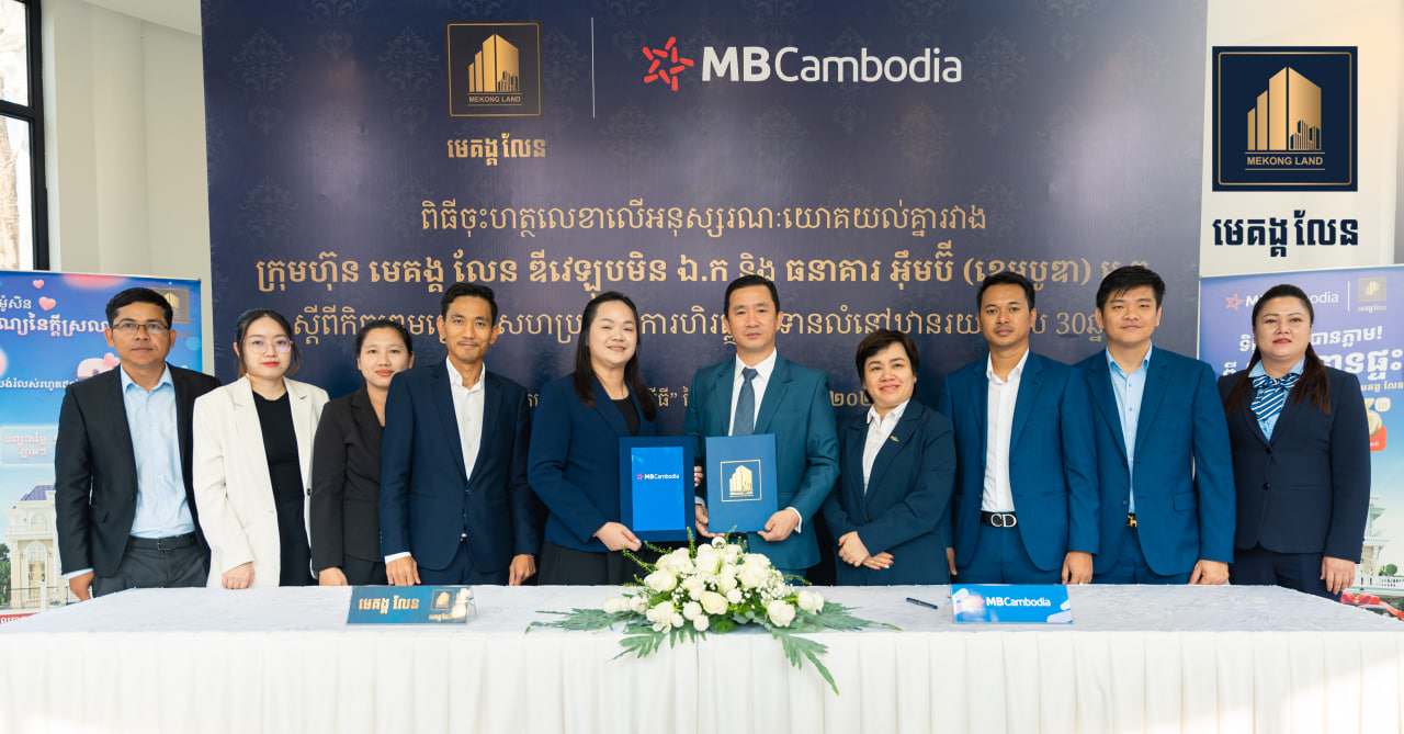 (ភ្នំពេញ)៖ បុរី មេគង្គ លែន និង ធនាគារ អ៊ឹមប៊ី (ខេមបូឌា) នៅថ្ងៃទី២៥ ខែមករា ឆ្នាំ២០២៥ បានចុះហត្ថលេខាលើអនុស្សរណៈយោគយល់គ្នា ស្តីពីកិច្ចព្រមព្រៀងសហប្រតិបត្តិការហិរញ្ញប្បទានគេហដ្ឋាន ដែលធនាគារ អ៊ឹមប៊ី (ខេមបូឌា)នឹងផ្ដល់កម្ចីទិញផ្ទះជាមួយទំហំទឹកប្រាក់កាន់តែធំជាងមុន និងមានរយៈពេលកម្ចីកាន់តែវែងជាងមុនរហូតដល់៣០ឆ្នាំ ជូនដល់អតិថិជនគ្រប់គម្រោងនៃ បុរី មេគង្គ លែន។