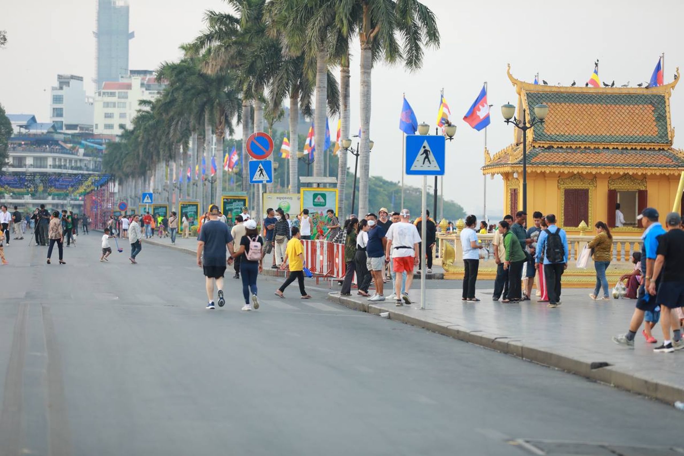 រាជធានីភ្នំពេញ៖ លោក ឃួង ស្រេង អភិបាលនៃគណៈអភិបាលរាជធានី បញ្ជាក់ថា រដ្ឋបាលរាជធានីគ្រោងរៀបចំទីតាំងស្តង់ម្ហូបអាហារ ការប្រគំតន្ត្រី ការគូរគំនូរ កន្លែងលេងសៀករហ័សកម្មផ្សេងៗ ដើម្បីបម្រើដល់ភ្ញៀវទេសចរដែលមកដើរលេងកម្សាន្តនៅផ្លូវថ្មើរជើង មានទីតាំង តាមបណ្តោយមាត់ទន្លេចាប់ពីមុខប្រៃសណីយ៍កម្ពុជា រហូតដល់មុខព្រះបរមរាជវាំង(ផ្លូវលេខ២៤០)…។