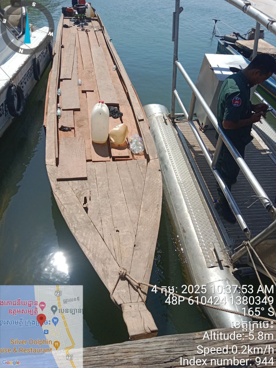 ក្រុងក្រចេះ៖ សមត្ថកិច្ចប្រឆាំងបទល្មើសសេដ្ឋកិច្ចខេត្តក្រចេះ បានចុះប្រតិបត្តិការស្ទាក់ចាប់ទូកដឹកឈើប្រណិតតាមបណ្តោយដងទន្លេមេគង្គលើ ស្ថិតក្នុងភូមិសាស្ត្រឫស្សីចារ ឃុំថ្មគ្រែ ស្រុកចិត្របុរី ដើម្បីយកទៅប្រគល់ជូនមន្ត្រីជំនាញសង្កាត់រដ្ឋបាលព្រៃឈើថ្មគ្រែ កាលពីថ្ងៃទី៤កុម្ភៈ ឆ្នាំ២០២៥...។