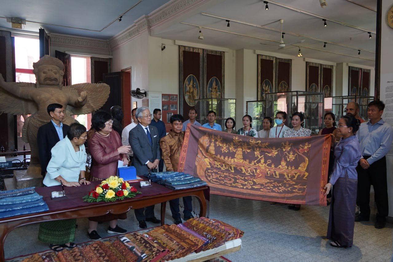 រាជធានីភ្នំពេញ៖ ហូលពិតានចំនួន៤០ផ្ទាំង ត្រូវបានក្រុមអង្គការគាំពារកុមារខ្មែរ (Caring for young khmer) របស់ជប៉ុន ដឹកនាំដោយលោកស្រី ហារូមិ សេគីគូជី Harumi Sekiguchi នាំយកមកប្រគល់ជូនក្រសួងវប្បធម៌ និងវិចិត្រសិល្បៈ ដើម្បីរក្សាទុកជាសម្បត្តិបេតិកភណ្ឌនៅសារមន្ទីរជាតិកម្ពុជា ដែលធានាបាននូវការអភិរក្ស នៃមរតកតម្បាញសូត្រខ្មែរ...។