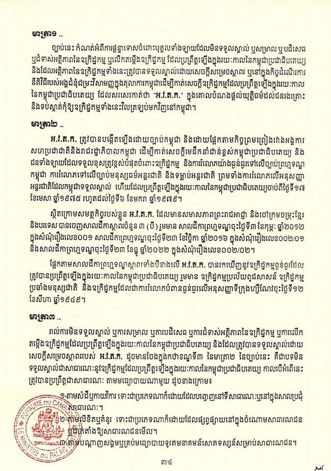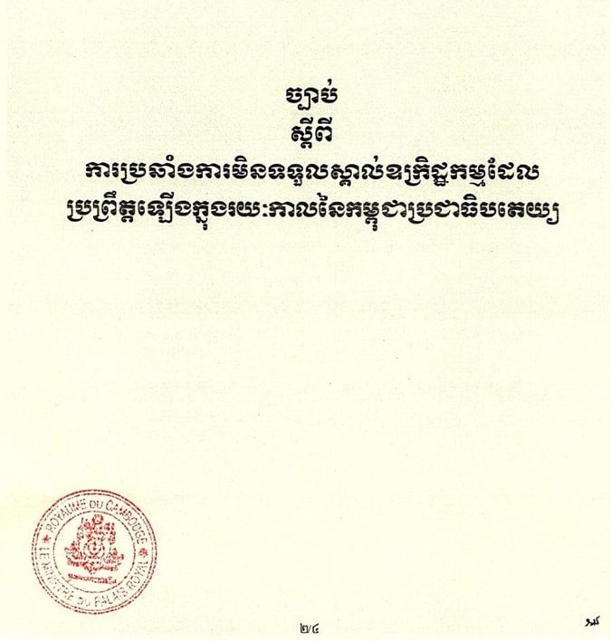 អាចអានទាំងស្រុងពីច្បាប់ថ្មី និងច្បាប់ចាស់ ស្តីពីការប្រឆាំងនឹងអ្នកមិនទទួលស្គាល់របបខ្មែរក្រហម