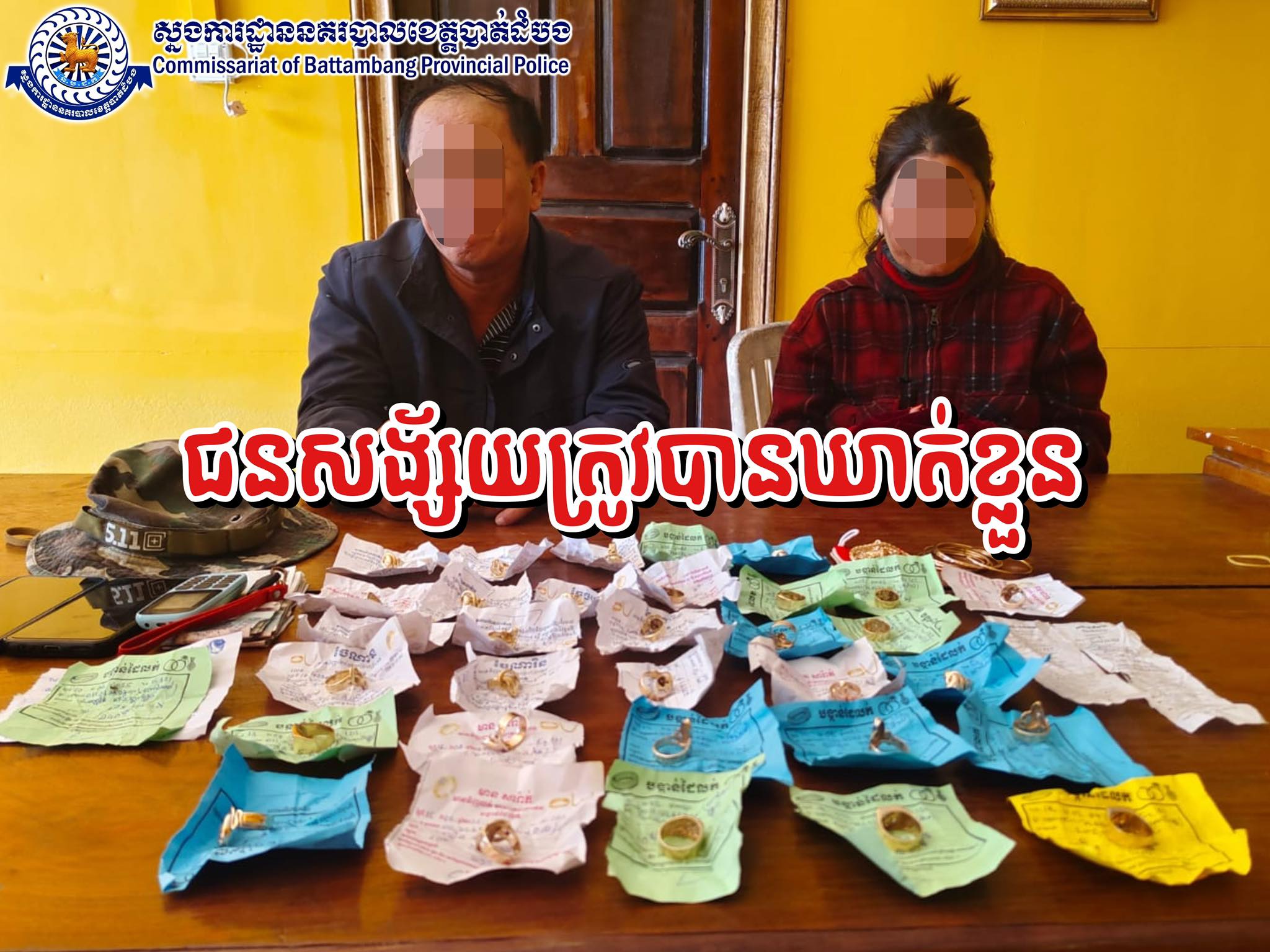 រាជធានីភ្នំពេញ៖ នៅព្រឹកថ្ងៃទី២១ ខែមីនា ឆ្នាំ២០២៥ មានករណីឆបោកកើតឡើងក្នុងផ្សារមួយនៅស្រុកសំឡូត ខេត្តបាត់ដំបង ដោយមានស្រ្តីបុរសពីរនាក់ ចូលទៅកន្លែងលក់មាស ហើយដាក់បញ្ចាំចិញ្ចៀនមួយវង់ ក្នុងតម្លៃ៤០ម៉ឺនរៀល ហើយសន្យាថា បញ្ចាំតែបីថ្ងៃប៉ុណ្ណោះ នឹងមកលស់យកចិញ្ចៀនទៅវិញ។ ដោយពិនិត្យទៅឃើញដូចជាចិញ្ចៀនមាសពិត ហើយថែមទាំងឃើញមានលិខិតបង្កាន់ដៃបញ្ជាក់ពីប្រភពទិញលក់ចិញ្ចៀននេះពីមុនមកច្បាស់លាស់ទៀតនោះ ស្រ្តីជាអាជីវករលក់មាស ក៏យល់ព្រមទទួលយកការដាក់បញ្ចាំ ហើយក៏ប្រគល់ប្រាក់៤០ម៉ឺនរៀលទៅឱ្យស្រ្តីបុរសទាំងពីរនាក់នោះ។