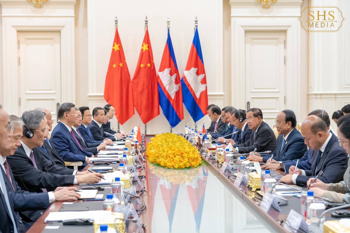 សម្ដេចតេជោ ហ៊ុន សែន បានវាយតម្លៃខ្ពស់ចំពោះកិច្ចសហប្រតិបត្តិការរវាងកម្ពុជា-ចិន ជាពិសេសការប្រាស្រ័យទាក់ទងគ្នាជាញឹកញាប់គ្រប់កម្រិត និងគ្រប់វិស័យ ដែលបង្ហាញពីសាមគ្គីភាពជាប្រពៃណី និងបង្កើនការកសាងទំនុកចិត្តនយោបាយកម្រិតខ្ពស់បំផុត ដោយឈរលើគោលការណ៍ស្មើភាពគ្នា គោរពផលប្រយោជន៍ស្នូលទៅវិញទៅមក និងប្រឆាំងរាល់ការជ្រៀតជ្រែកពីខាងក្រៅ លើកិច្ចការផ្ទៃក្នុងរបស់ប្រទេសទាំងពីរ។ វត្តមានប្រធានាធិបតីចិននៅកម្ពុជានាពេលនេះ បានបង្ហាញពីចំណងមិត្តភាពជាប្រពៃណីដ៏រឹងមាំ ពង្រឹងមិត្តភាពដែកថែប លើកកម្ពស់ទំនាក់ទំនងរវាងស្ថាប័នរដ្ឋ និងរដ្ឋ រវាងបក្ស និងបក្សឱ្យកាន់តែជិតស្និទ្ធមួយកម្រិតថែមទៀត។ សម្ដេចតេជោ បានស្នើឱ្យភាគីចិនបន្តគាំទ្រការអភិវឌ្ឍក្នុងប្រទេសកម្ពុជា និងជួយជ្រោមជ្រែងបន្ថែមទៀតដល់កម្ពុជា ក្នុងការអភិវឌ្ឍ។