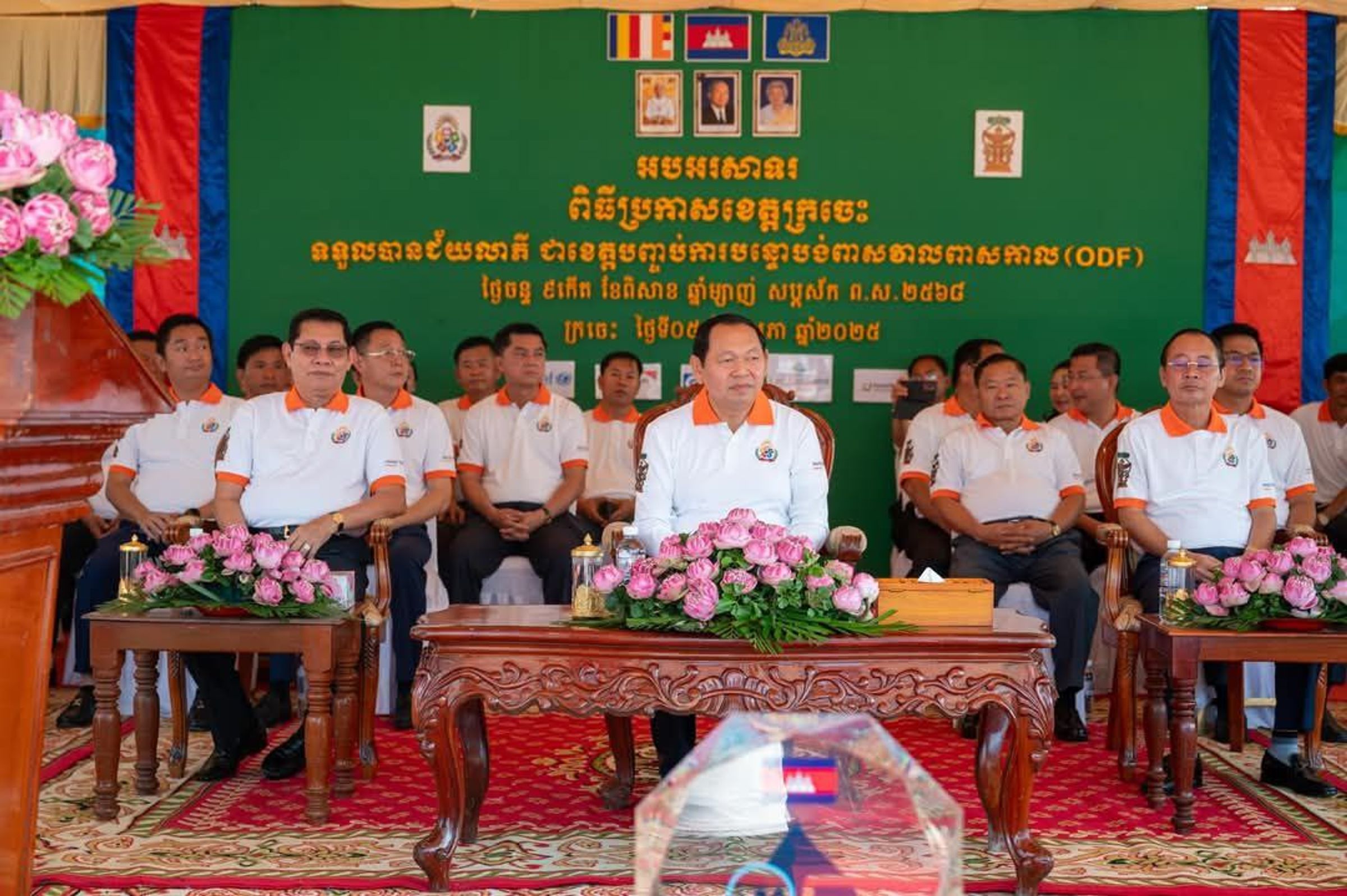 ពិធីប្រកាសទទួលស្គាល់ខេត្តក្រចេះ ជាខេត្តបញ្ចប់ការបន្ទោបង់ពាសវាលពាសកាល ធ្វើឡើងក្រោមអធិបតីភាព លោក ឆាយ ឫទ្ធិសែន រដ្ឋមន្ត្រីក្រសួងអភិវឌ្ឍន៍ជនបទ និងលោក វ៉ា ថន អភិបាលខេត្តក្រចេះ រួមទាំងអ្នកពាក់ព័ន្ធសរុបប្រមាណ១៥០០នាក់។ ថ្លែងក្នុងកម្មវិធីខាងលើ អភិបាលខេត្តក្រចេះ លោក វ៉ា ថន បានឱ្យដឹងថា តាមរយៈការងារនៃការលើកកម្ពស់អនាម័យជនបទឆ្នាំ២០២៤-២០២៥ ប្រជាពលរដ្ឋខេត្តក្រចេះបានសាងសង់បង្គន់អនាម័យផ្ទាល់ខ្លួនសរុបចំនួនប្រមាណ៨ម៉ឺន៤ពាន់ខ្នងផ្ទះ និងប្រើប្រាស់បង្គន់រួមជិត៤ពាន់ខ្នងផ្ទះ។