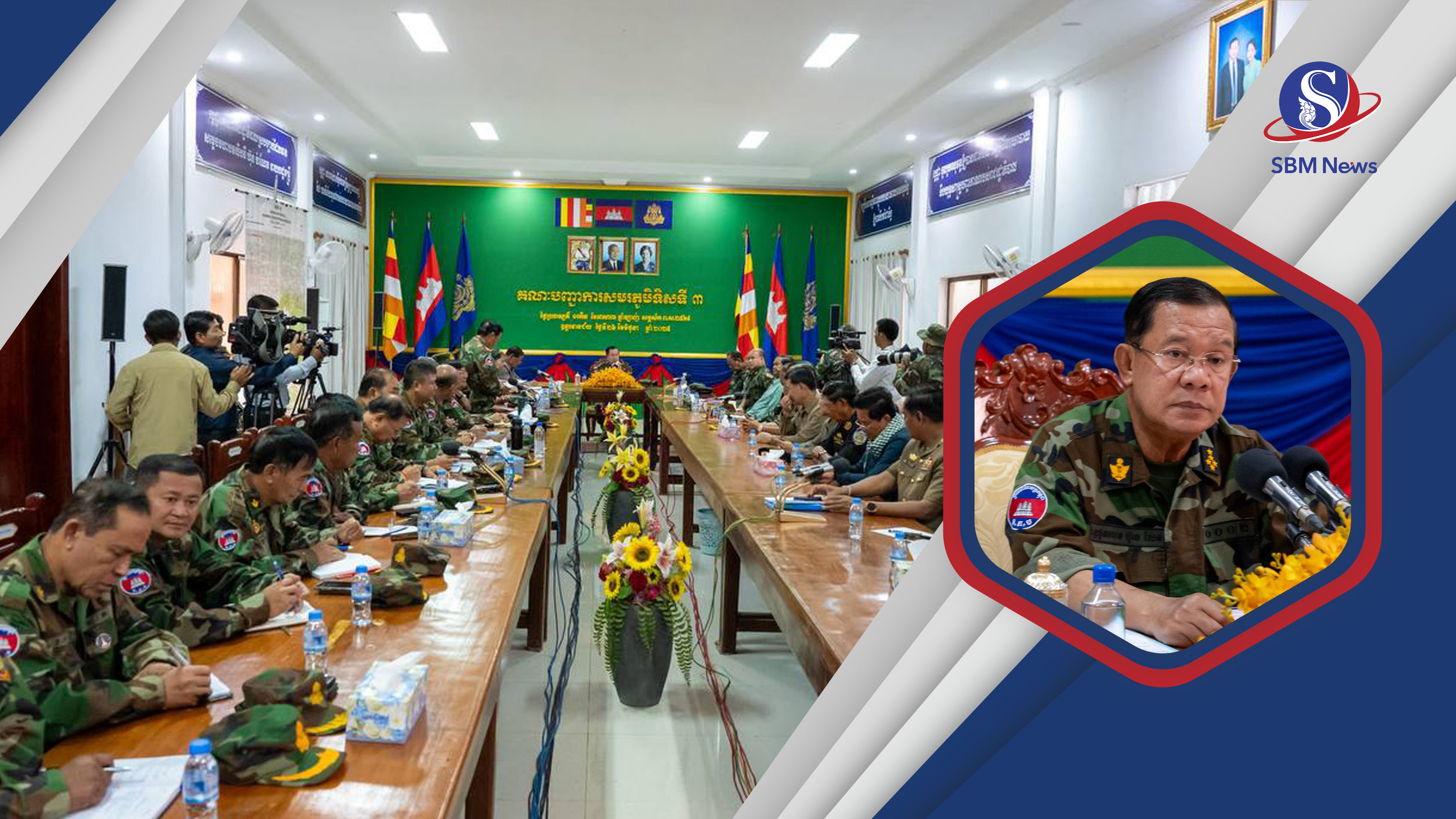 រាយការណ៍ពីរាជធានីភ្នំពេញ៖ ក្រោយទៅដល់ព្រំដែនភ្លាម សម្តេចតេជោ ហ៊ុន សែន នាយឧត្តមសេនីយ៍ផ្កាយមាស៥ផុតលេខ បានបើកកិច្ចប្រជុំភ្លាមតែម្តង ដោយមានវត្តមានលោកនាយកឧត្តមសេនីយ៍ ទៀ សីហា ឧបនាយករដ្ឋមន្រ្តី-រដ្ឋមន្រ្តីក្រសួងការពារជាតិ រួមទាំងមេទ័ពកំពូលៗ ដូចជា លោកនាយឧត្តមសេនីយ៍ វង្ស ពិសេន អគ្គមេបញ្ជាការកងយោធពលខេមរភូមិន្ទ លោកនាយឧត្តមសេនីយ៍ ឥត សារ៉ាត់ អគ្គមេបញ្ជាការរង និងជានាយសេនាធិការចម្រុះនៃកងយោធពលខេមរភូមិន្ទ និងលោកនាយឧត្តមសេនីយ៍ ម៉ៅ សុផាន់ មេបញ្ជាការកងទ័ពជើកគោក ជាដើម។ មិនទាន់មានព័ត៌មានអំពីខ្លឹមសារនៃកិច្ចប្រជុំ ឬប្រសាសន៍របស់សម្តេចតេជោ ហ៊ុន សែន នោះទេ។